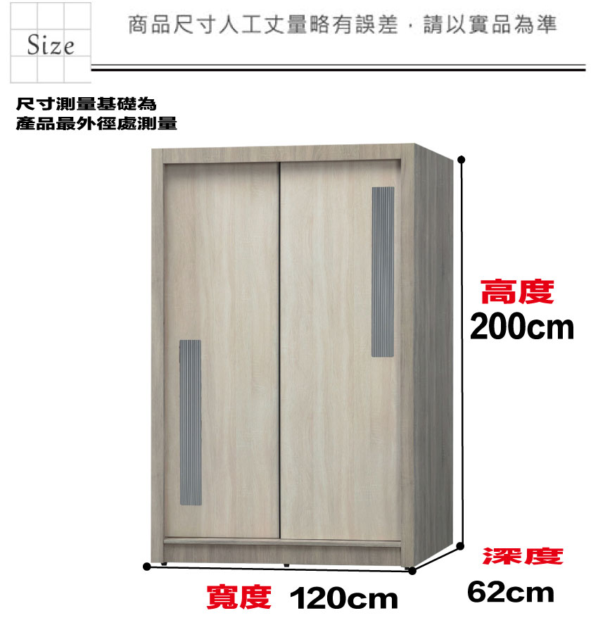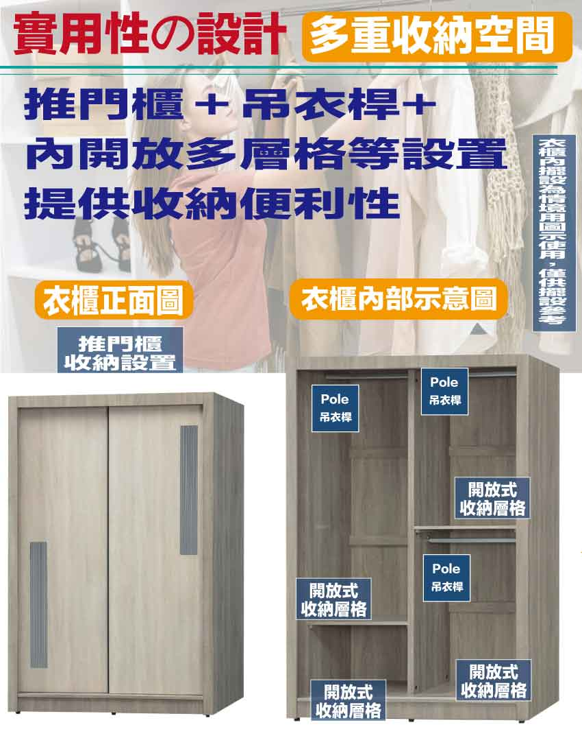 - ◆產品名稱:【綠家居】莉斯4尺推門衣櫃