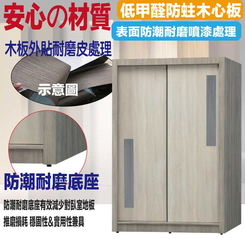 【綠家居】莉斯4尺推門衣櫃 木紋雙色系+安心材質製造,使用放心+搭配居家更便利,採用防蛀木心板+防潮耐磨底座+等安心材質製造 ,外層採用防潮耐磨噴漆處理搭配採用推門櫃+吊衣桿+內開放層格等收納空間設計,全由專人配送到家,專業安心服務,替你省下更多時間!