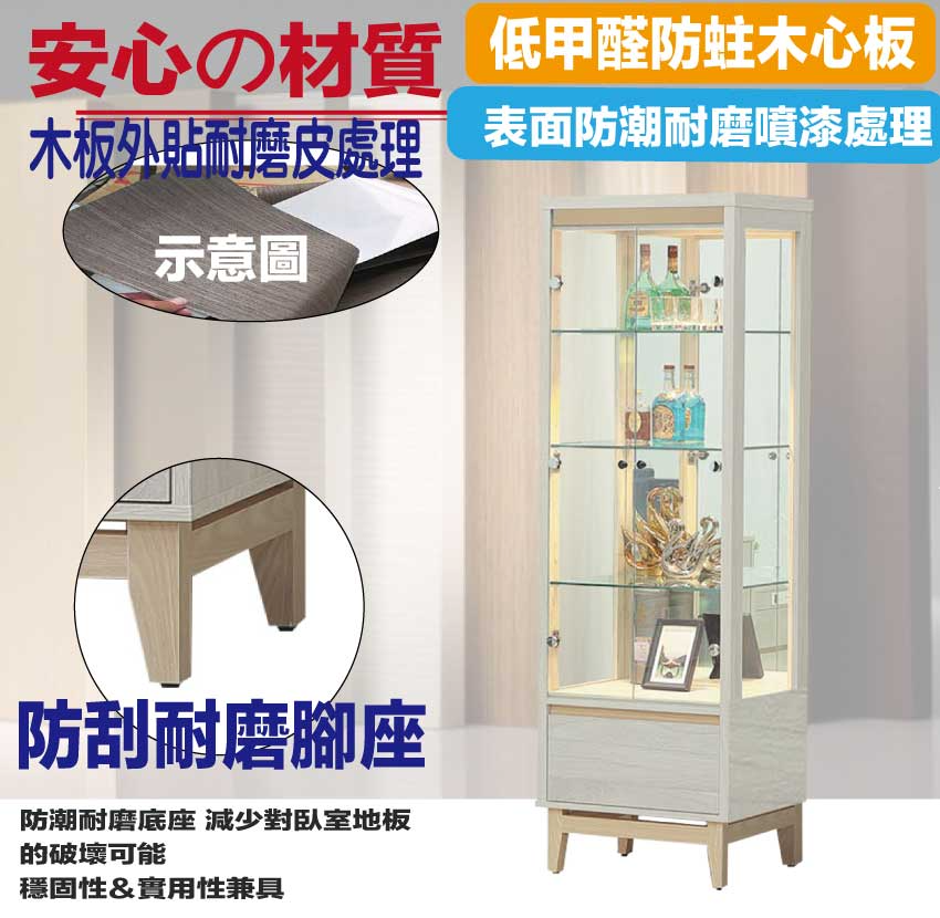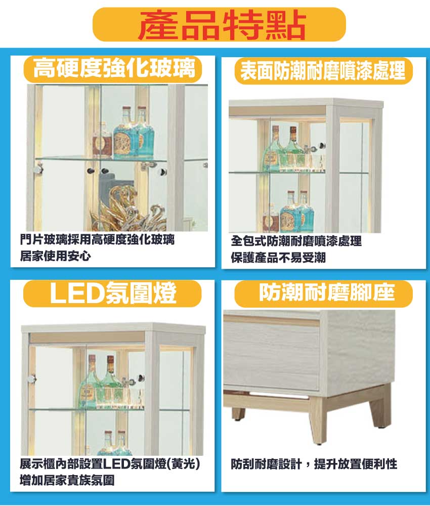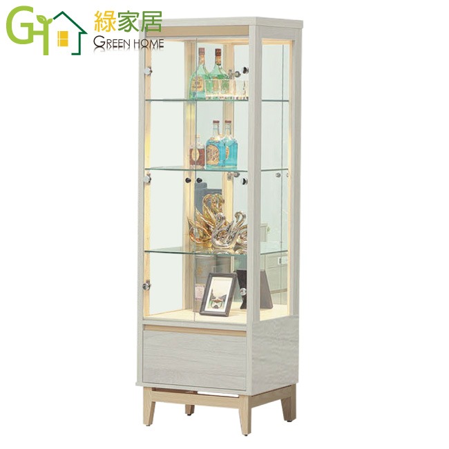 【綠家居】歌斯2.2尺二門單抽展示櫃 淺橡雙色系+安心材質製造,使用放心+搭配居家更便利,採用防蛀木心板+防潮耐磨腳座+五金滑軌結構+強化玻璃門片等安心材質製造 ,外層採用防潮耐磨噴漆處理搭配採用開門櫃+單抽屜+內開放式層格+LED展示燈等收納空間設計,全由專人配送到家,專業安心服務,替你省下更多時間!