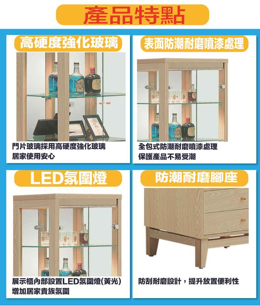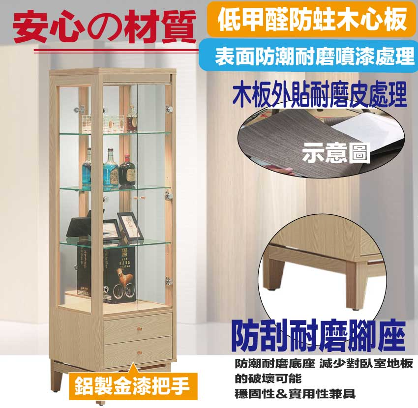 - ◆產品名稱:【綠家居】萬斯2.2尺二門二抽展示櫃