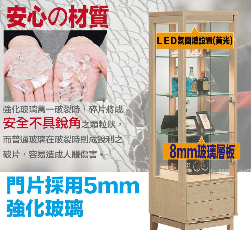 【綠家居】萬斯2.2尺二門二抽展示櫃 橡木紋色系+安心材質製造,使用放心+搭配居家更便利,採用防蛀木心板+防潮耐磨腳座+五金滑軌結構+強化玻璃門片等安心材質製造 ,外層採用防潮耐磨噴漆處理搭配採用開門櫃+二抽屜+內開放式層格+LED展示燈等收納空間設計,全由專人配送到家,專業安心服務,替你省下更多時間!