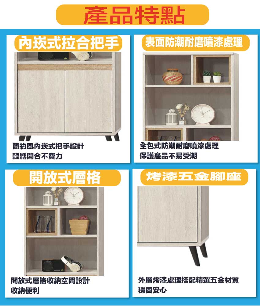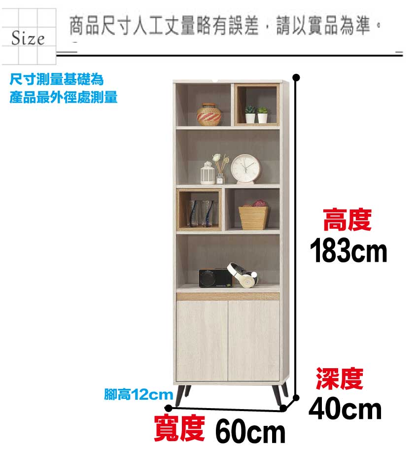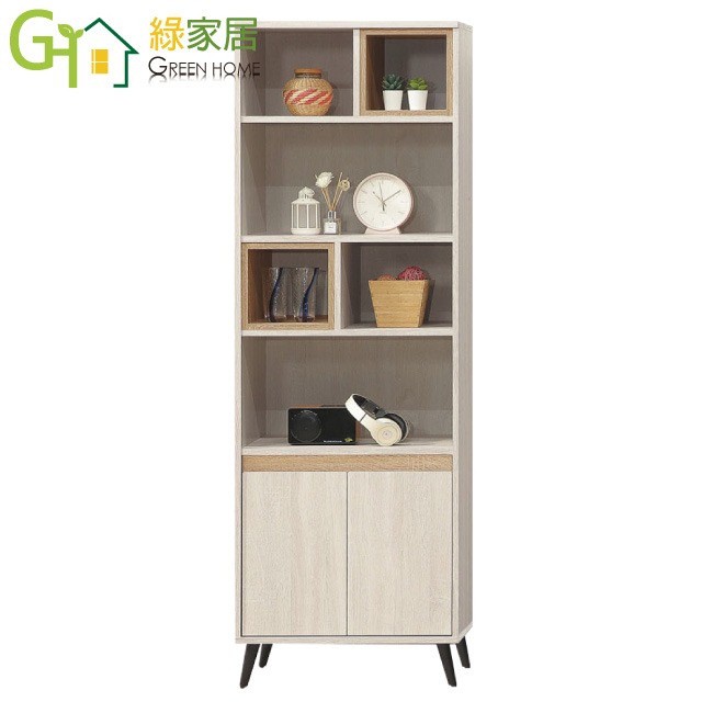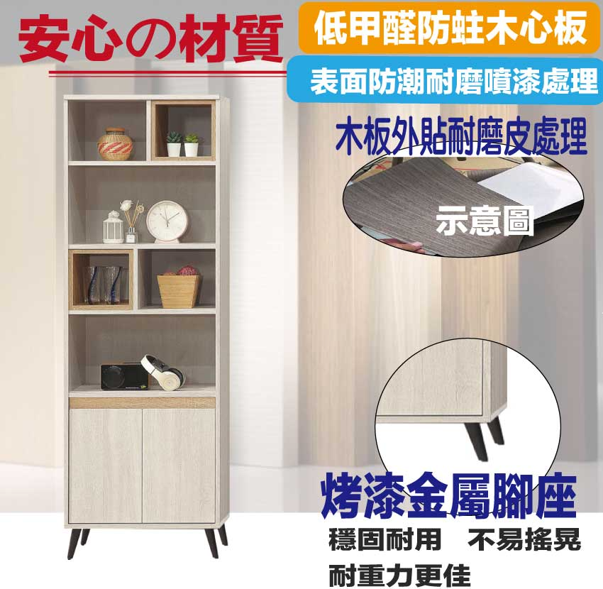 【綠家居】美斯2尺二門多格展示櫃 淺橡雙色系+安心材質製造,使用放心+搭配居家更便利,採用防蛀木心板+烤漆五金腳座+防夾手緩衝五金等安心材質製造 ,外層採用防潮耐磨噴漆處理搭配採用開門櫃+開放式層格等收納空間設計,全由專人配送到家,專業安心服務,替你省下更多時間!