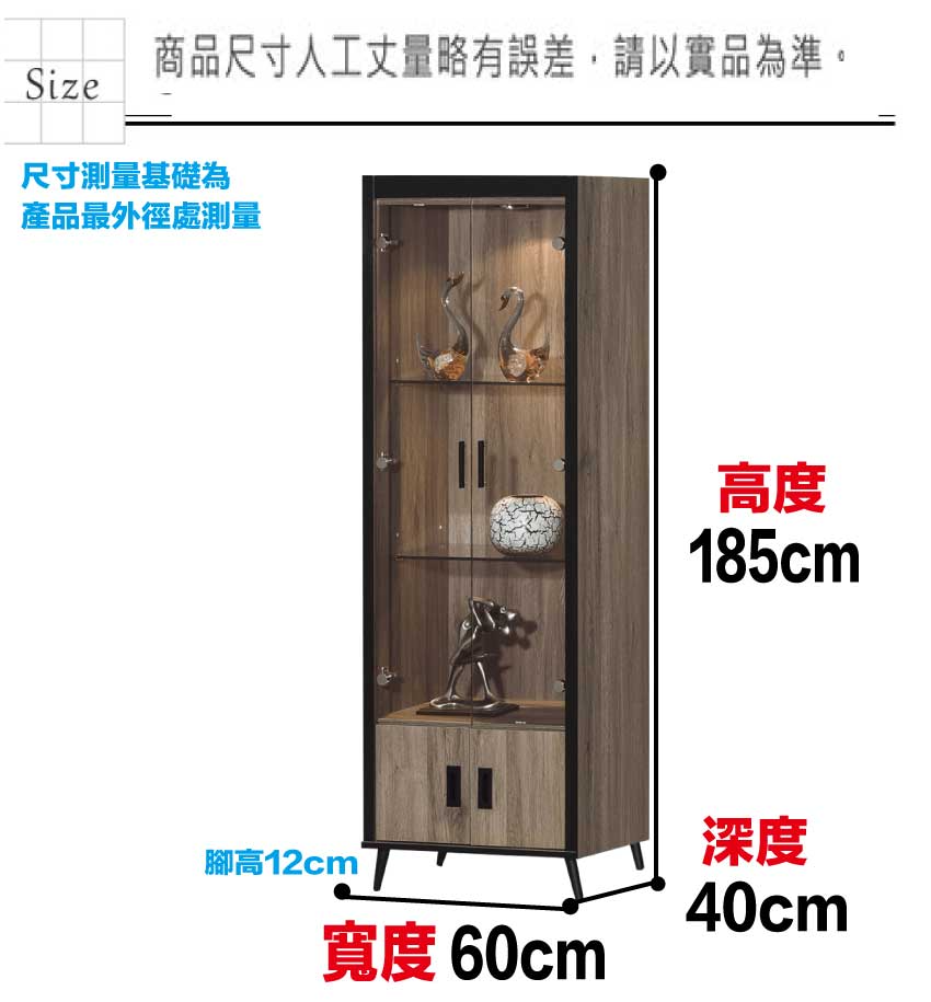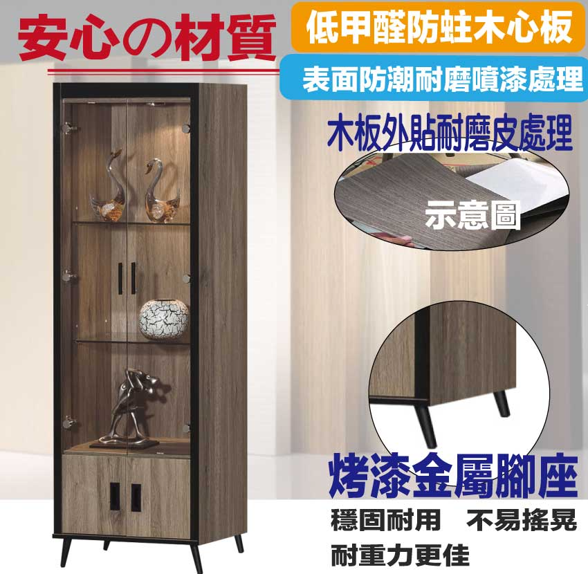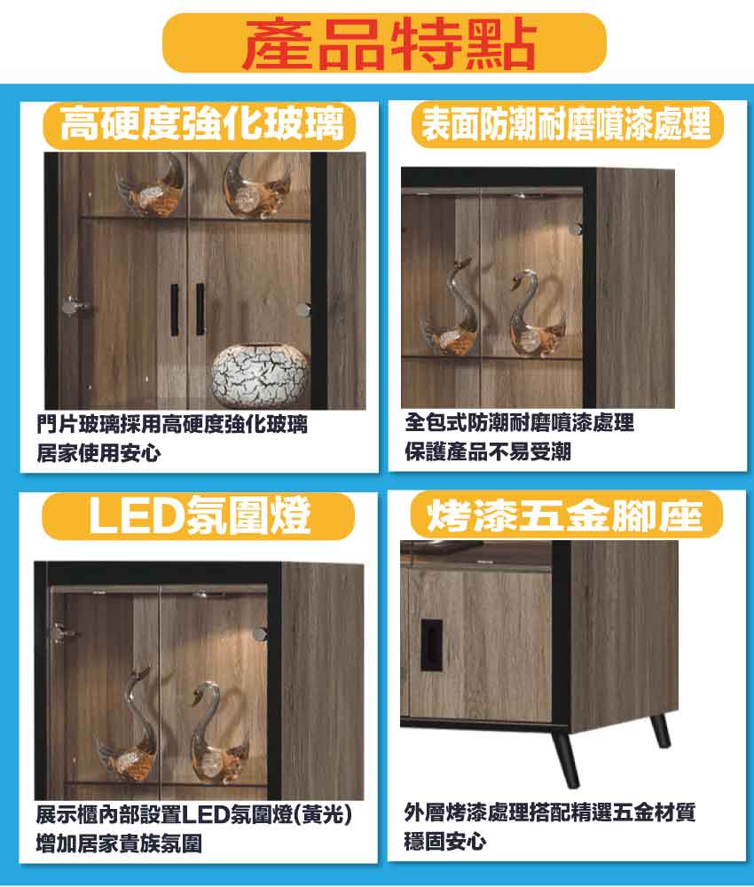 - ◆產品名稱:【綠家居】特斯灰橡2尺四門展示櫃