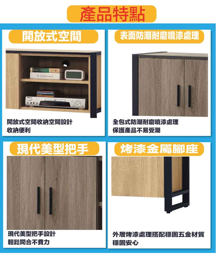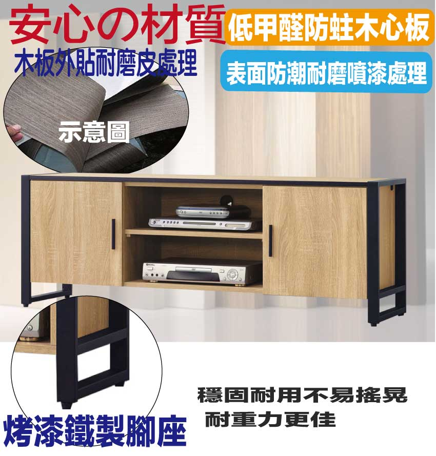 材質:防蛀木心板+烤漆五金腳座