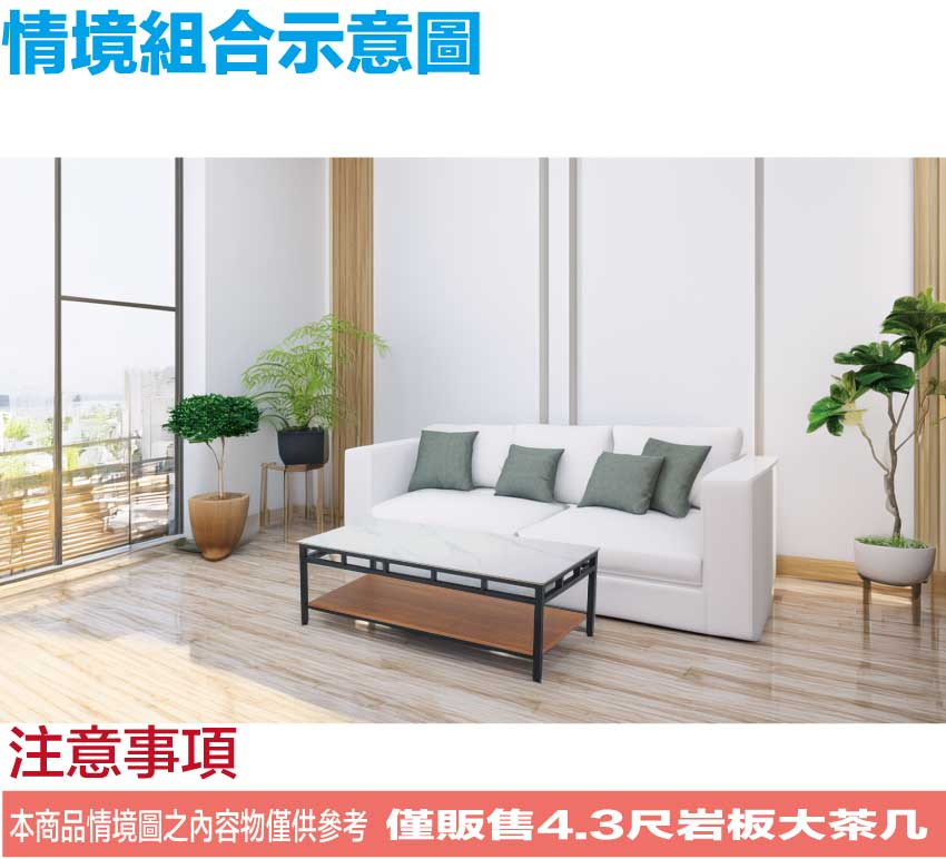 - ◆產品名稱:【綠家居】伊斯4.3尺岩板鐵框大茶几(三色可選)
