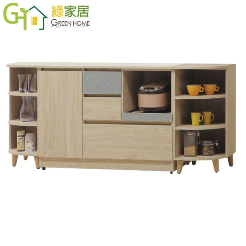 【綠家居】星空6.7尺開門三抽拉盤低餐櫃組合 木紋雙色系+現代簡約風格+安心材質製造,使用放心+搭配居家更便利,整體採用防蛀木心板+防刮耐磨腳座+五金滑軌結構等材質製造搭配外層採用優莉坦耐磨全包式噴漆處理 ,採用開門櫃+拉盤層架+三抽屜+開放層格等收納空間設計,全由專人配送到家,專業安心服務,替你省下更多時間!