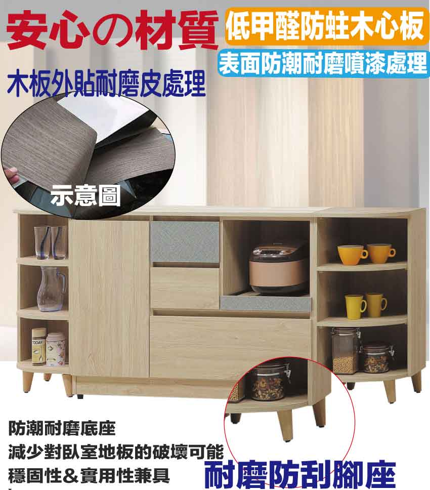- ◆產品名稱:【綠家居】星空6.7尺開門三抽拉盤低餐櫃組合