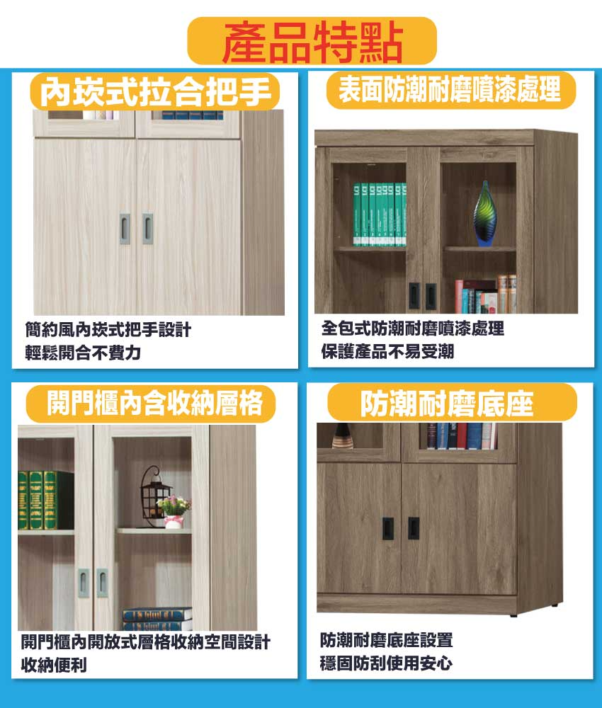【綠家居】歐斯2.7尺四門收納櫃/書櫃(二色可選) 二色可選+安心材質製造,使用放心+搭配居家更便利,採用防潮耐磨底座+五金滑軌結構等安心材質製造 ,外層採用防潮耐磨噴漆處理搭配採用開門櫃+內開放式層格等收納空間設計,全由專人配送到家,專業安心服務,替你省下更多時間!
