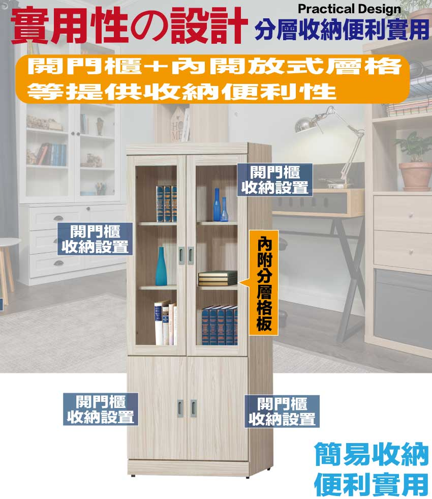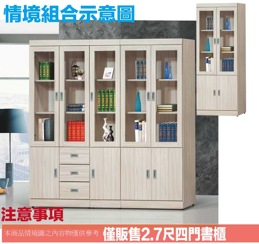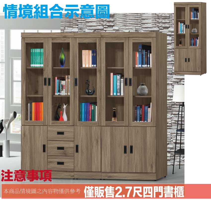 - ◆產品名稱:【綠家居】歐斯2.7尺四門收納櫃/書櫃(二色可選)