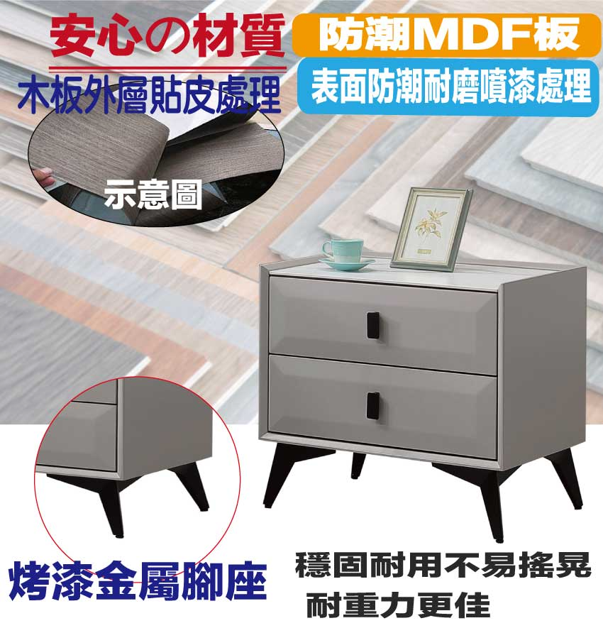 - ◆產品名稱:【綠家居】普斯1.7尺二抽岩板床頭櫃