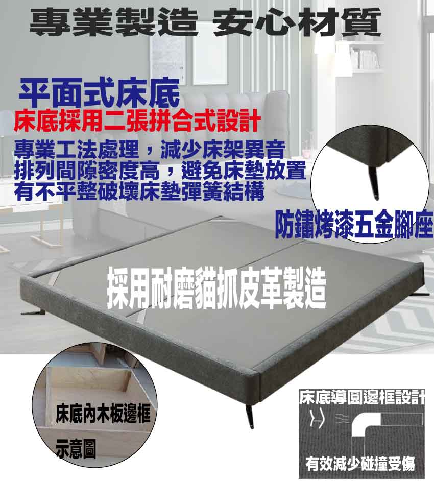 搭配採用床底導圓邊框設計+平面式雙床底併合設計搭配止滑天鵝絨布面,可讓床墊平穩置放避免破壞結構,並減少床墊位移不穩的困擾