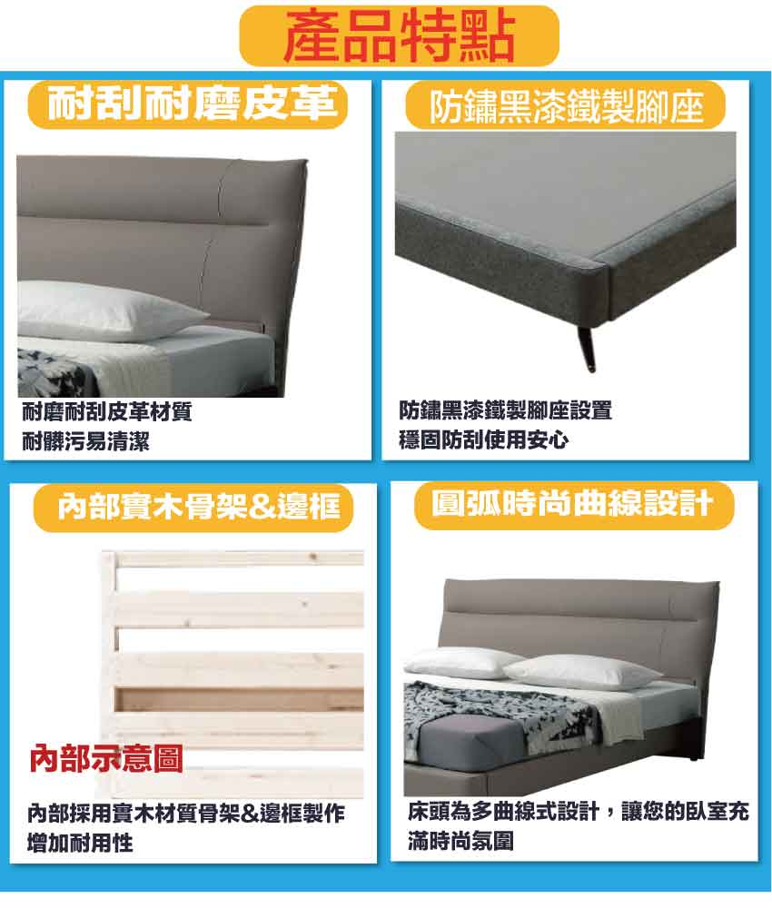 - ◆產品名稱:【綠家居】美亞5尺雙人耐磨皮革床台組合(床頭片+床底+不含床墊)