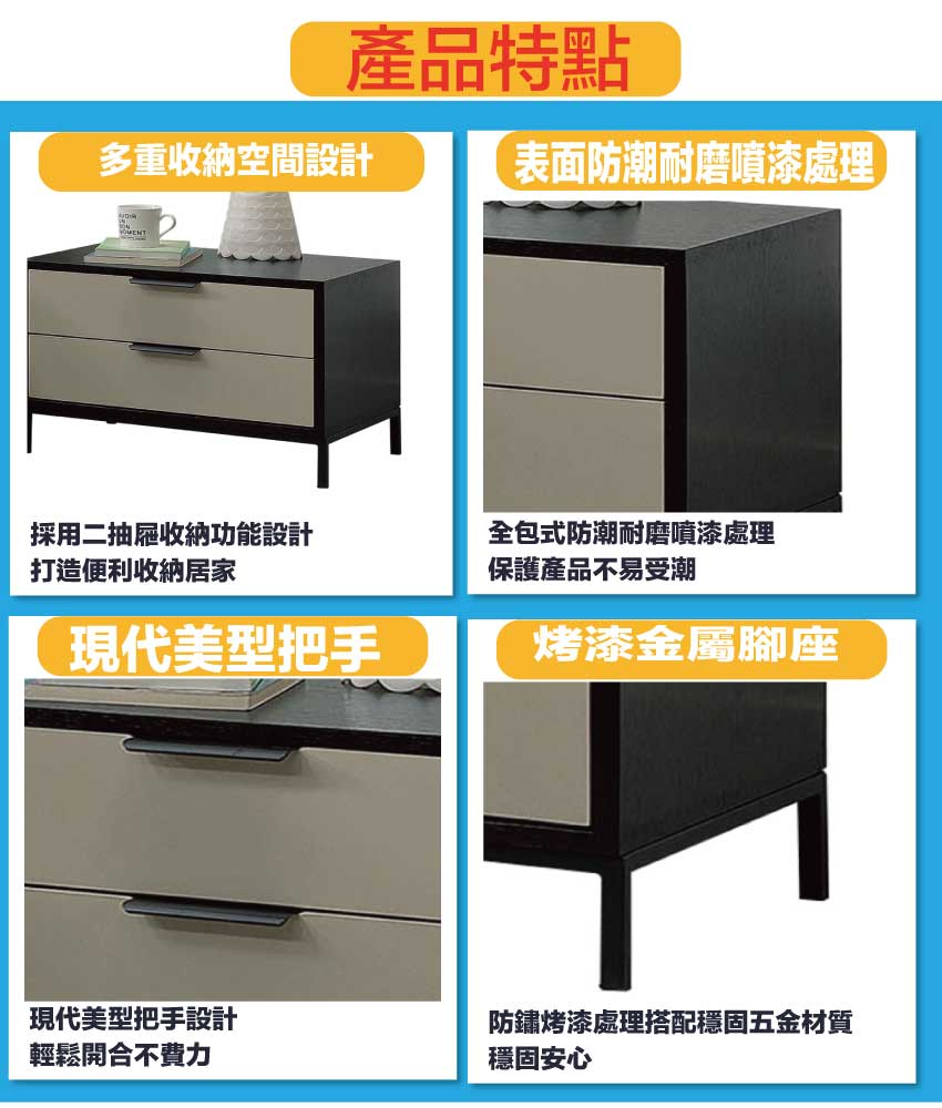 - ◆產品名稱:【綠家居】范斯1.8尺二抽雙色床頭櫃