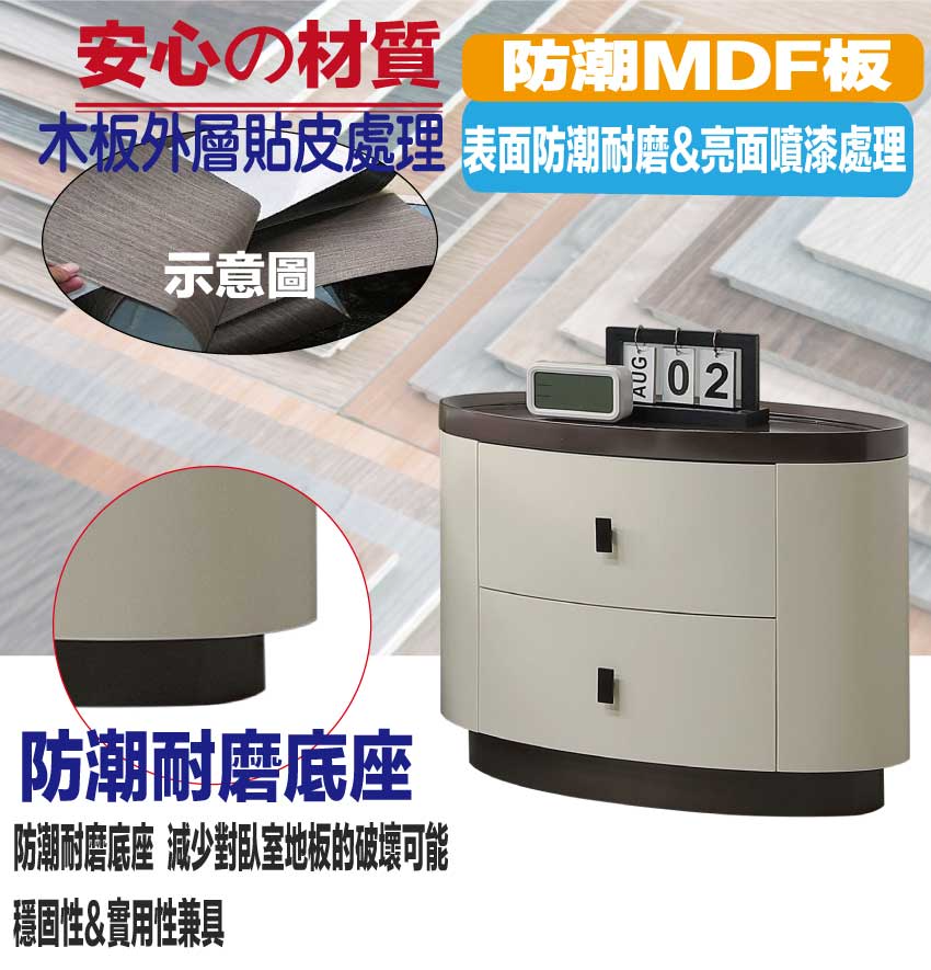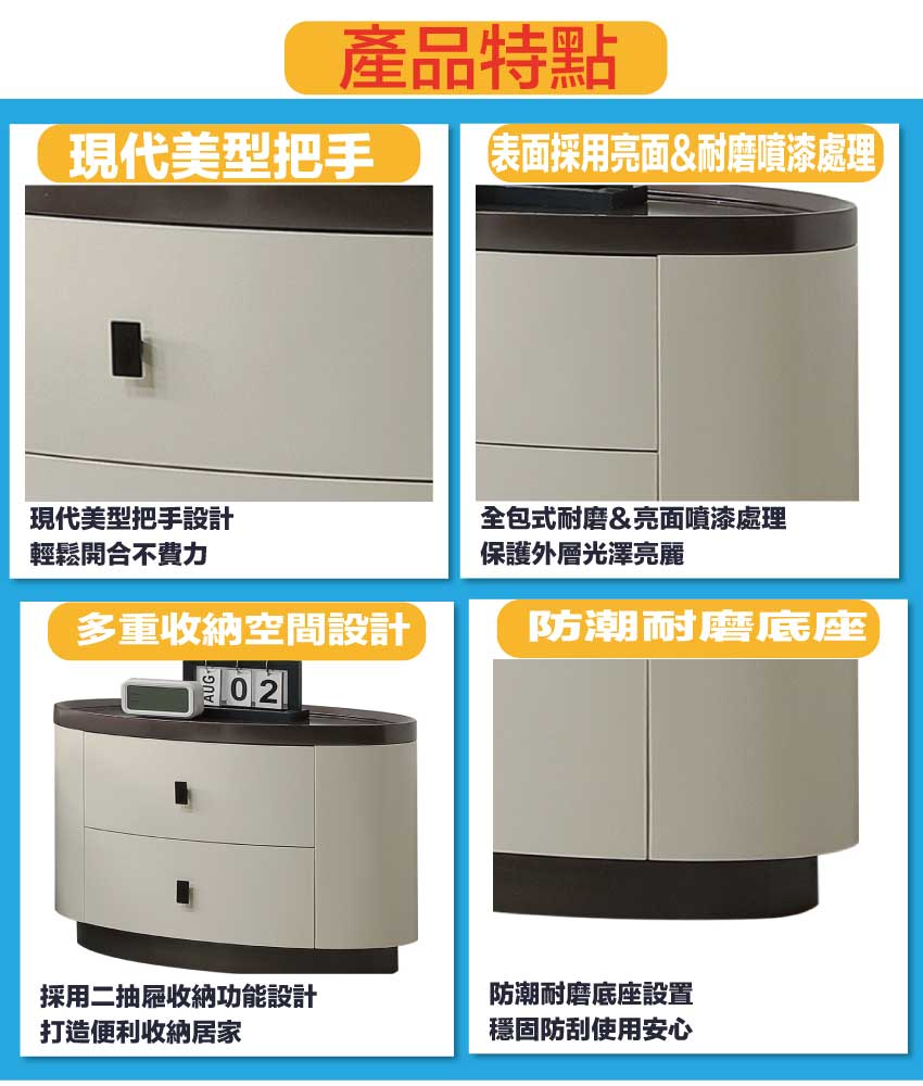 - ◆產品名稱:【綠家居】范恩2尺二抽雙色床頭櫃