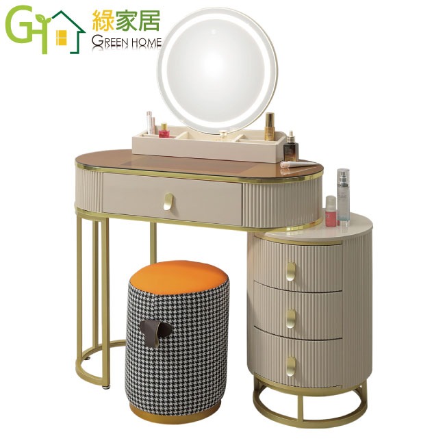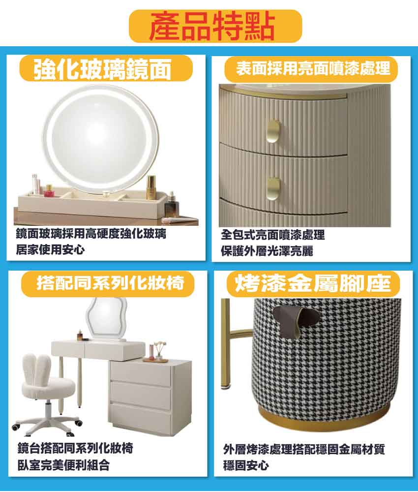 - ◆產品名稱:【綠家居】卡德恩3尺雙色伸縮觸控鏡面鏡台組合(含化妝椅)