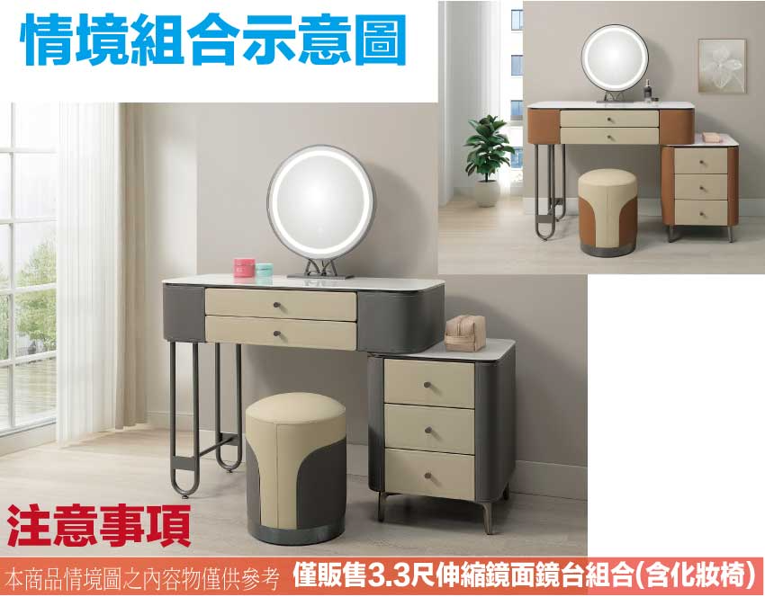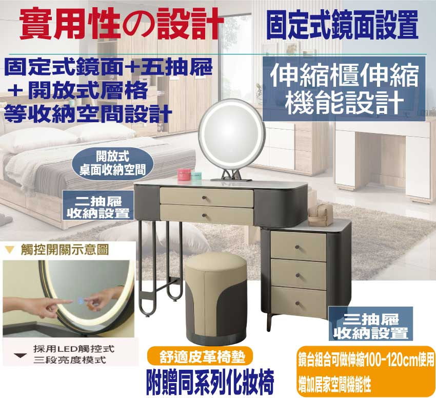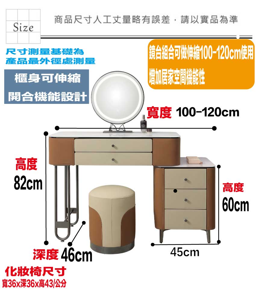 此鏡台組合可伸縮寬度100-120cm變化增加空間靈活性