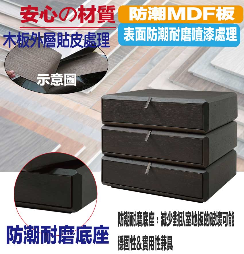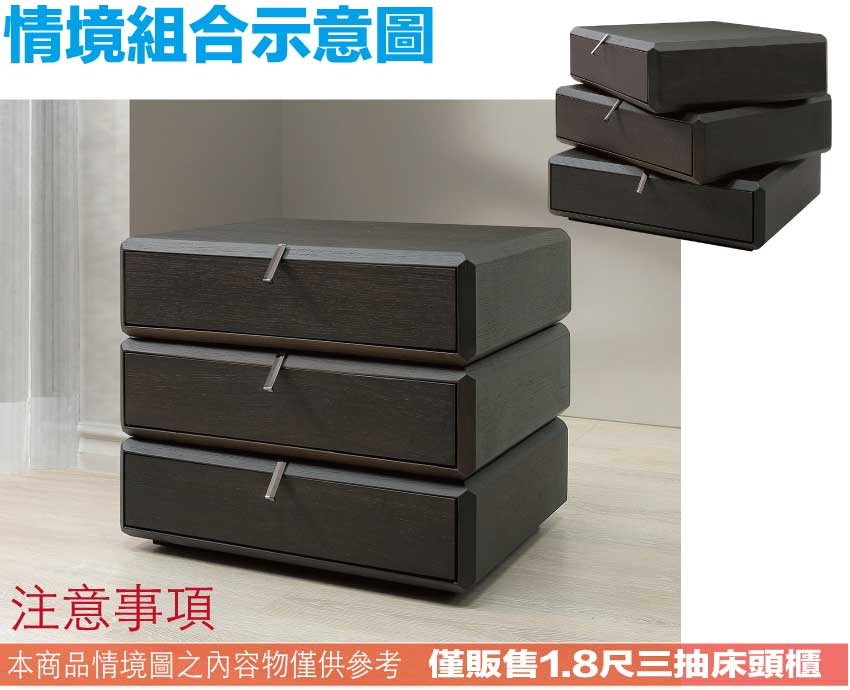 - ◆產品名稱:【綠家居】恩卡1.8尺旋轉三抽床頭櫃