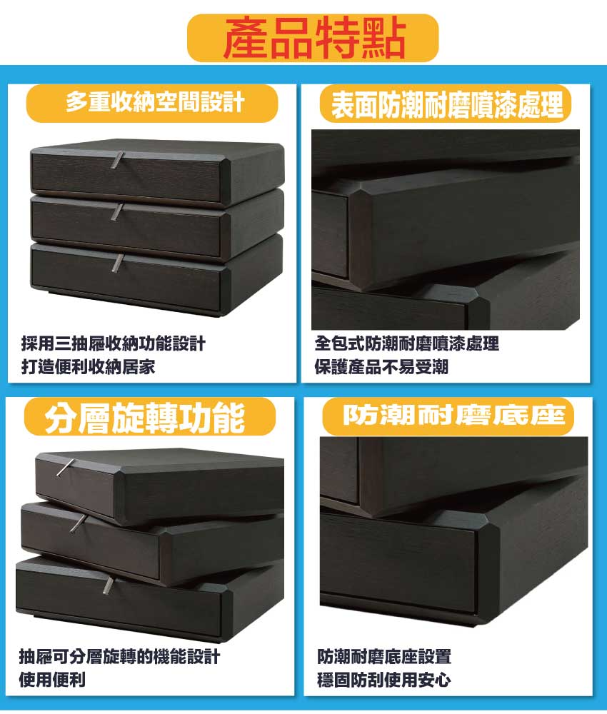 此產品內置旋轉五金結構三個抽屜可獨立旋轉使用