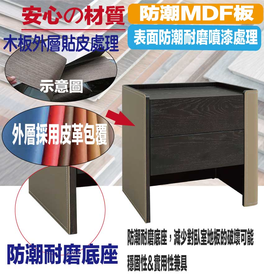 材質:防潮MDF板+防潮耐磨底座+五金滑軌結構+透氣柔韌皮革