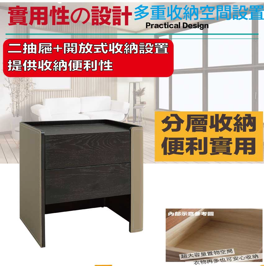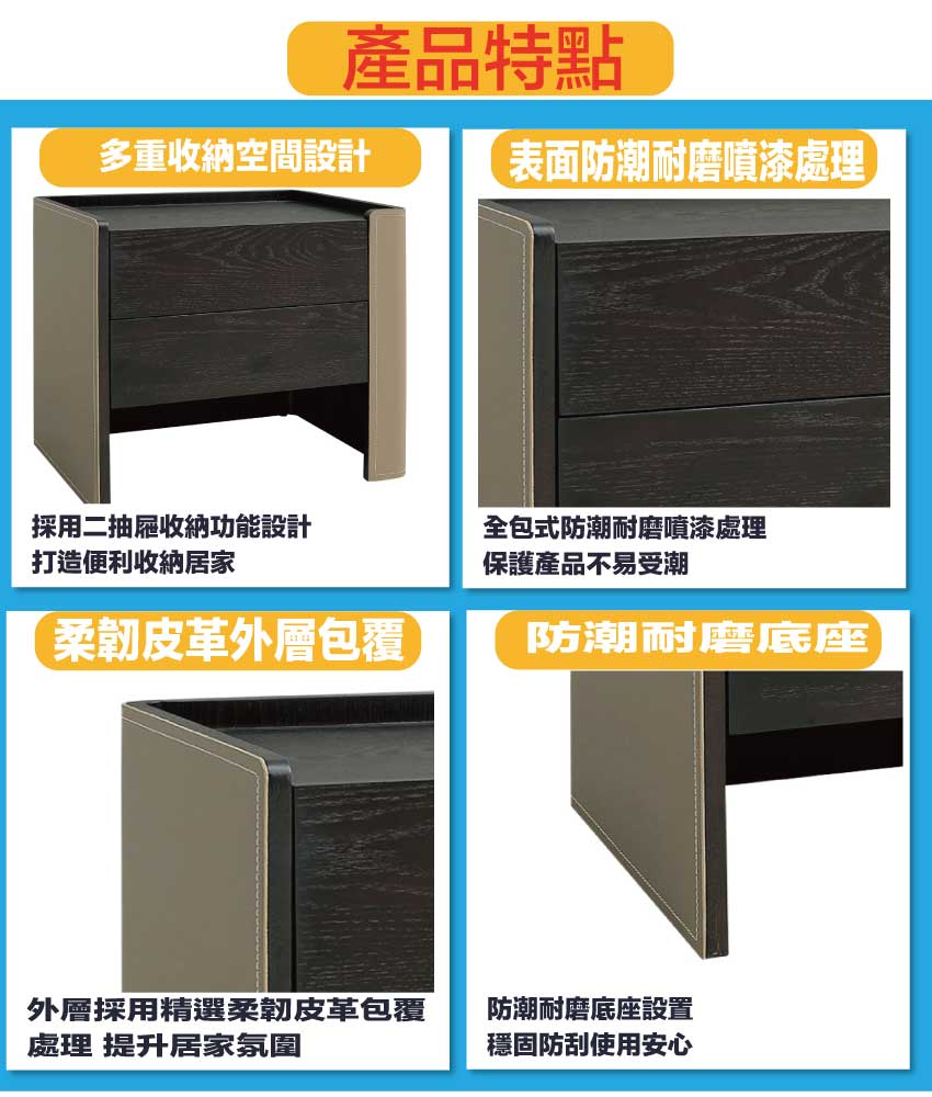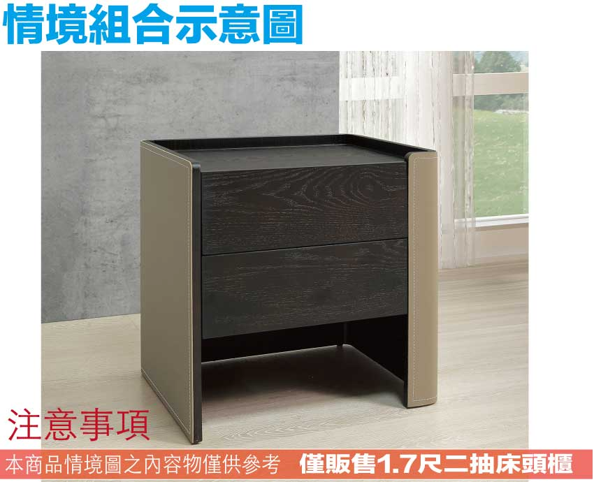 - ◆產品名稱:【綠家居】亞波1.7尺雙色二抽皮革床頭櫃
