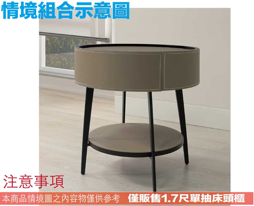 - ◆產品名稱:【綠家居】落葉1.7尺單抽皮革床頭櫃