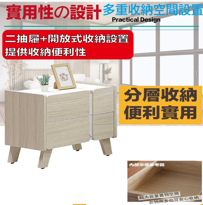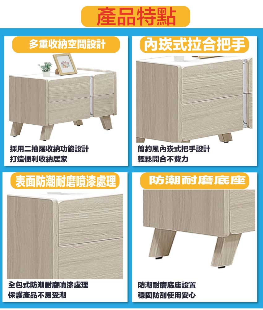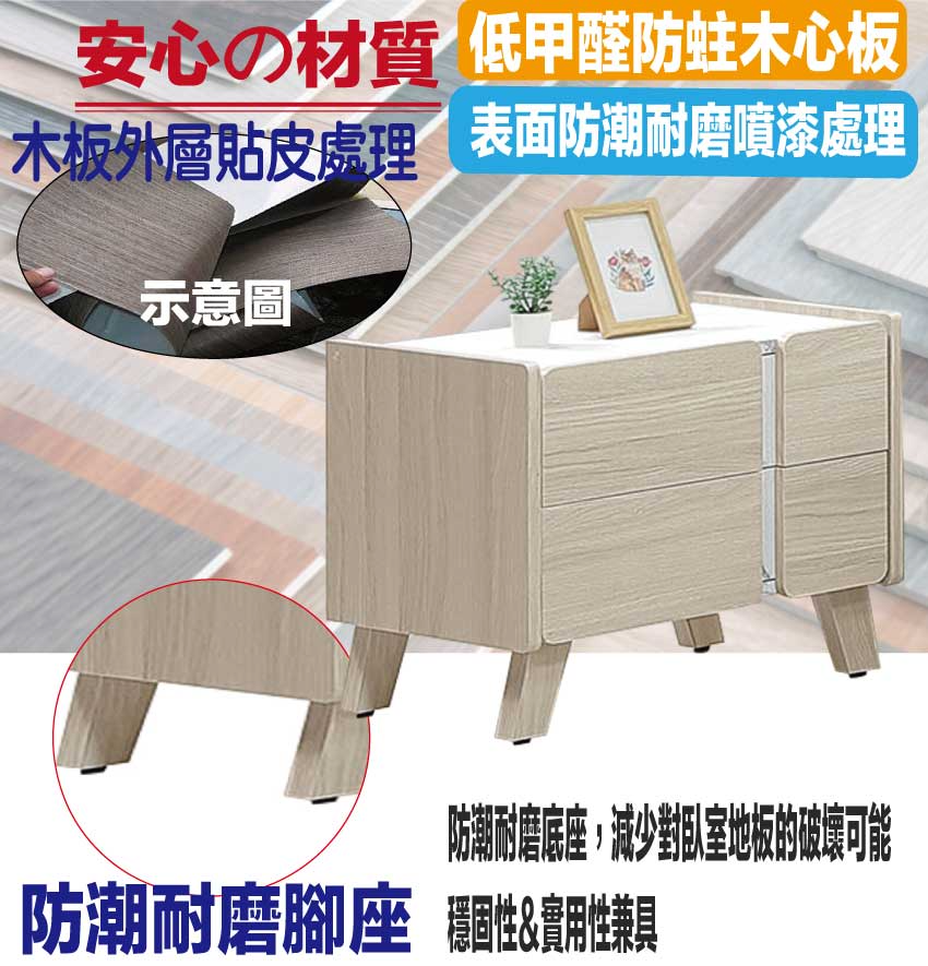 - ◆產品名稱:【綠家居】安卡蘭1.8尺二抽床頭櫃