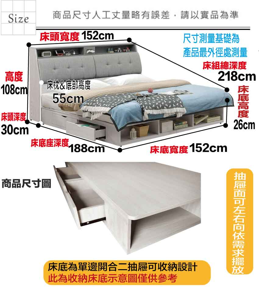 床頭尺寸:(寬)152x(深)30x(高)108/公分