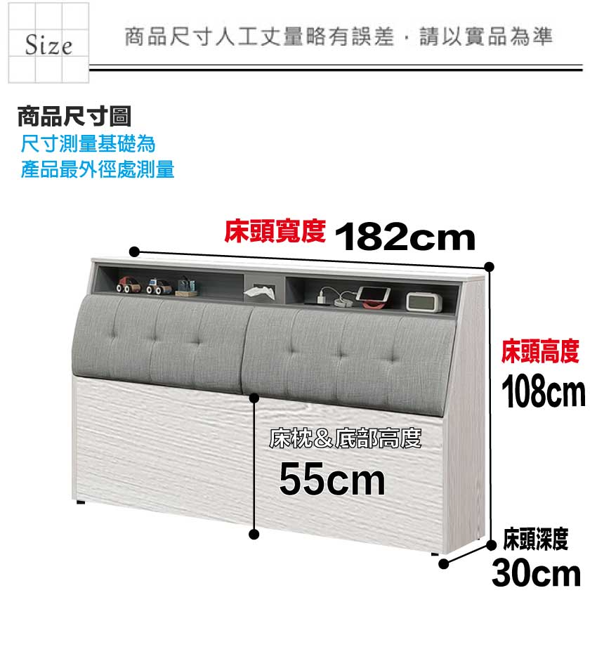 床頭尺寸:(寬)182x(深)30x(高)108/公分