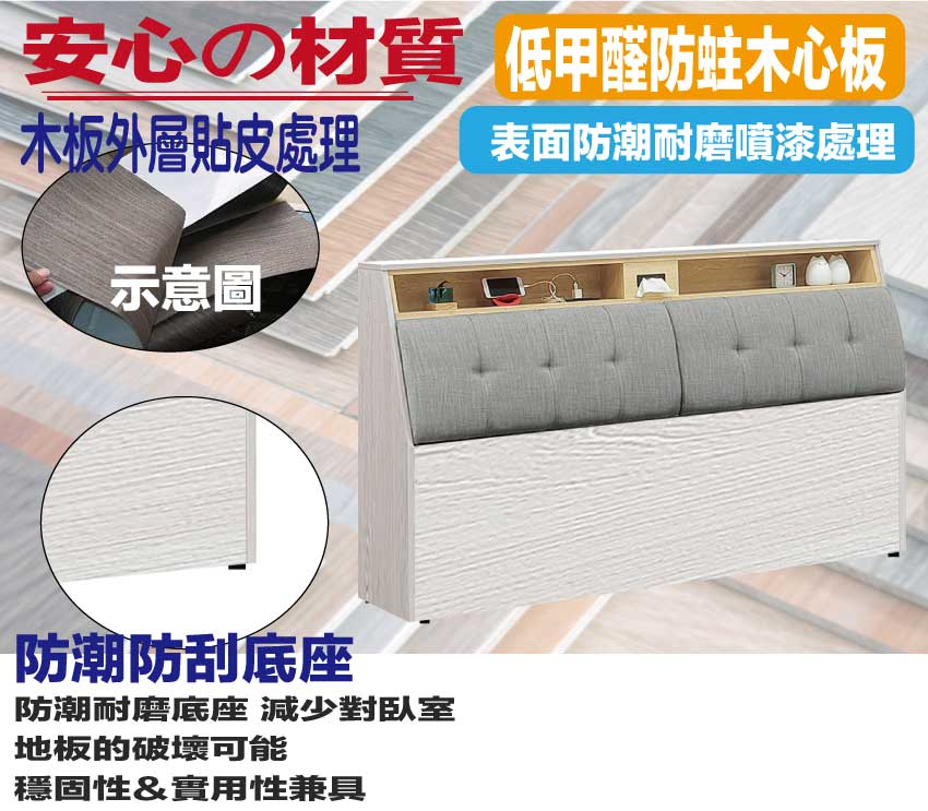 材質:防蛀木心板+防潮耐磨底座+透氣亞麻布+高回彈泡棉