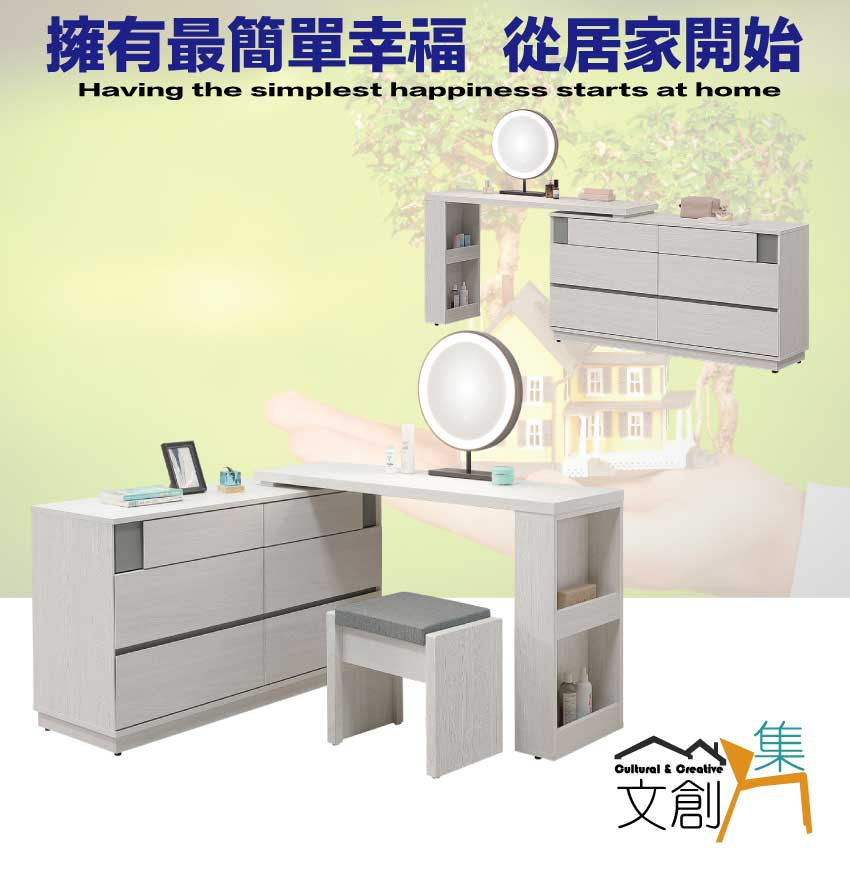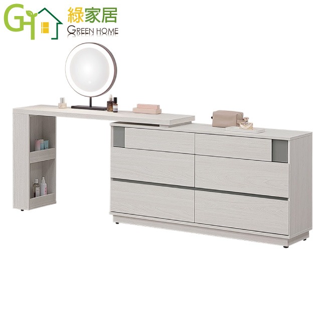 鏡臺採用櫃身可伸縮135-230cm使用加上可變化L型桌櫃組合的便利性設計
