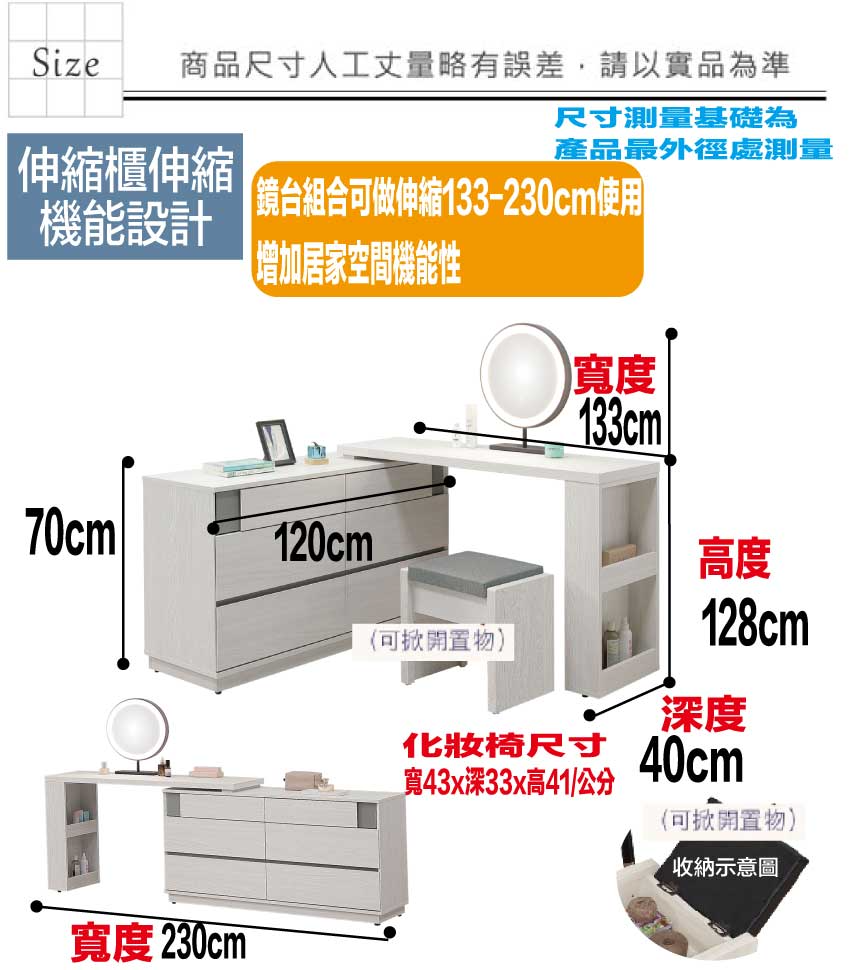尺寸:(寬)133-230x(深)40x(高)128/公分