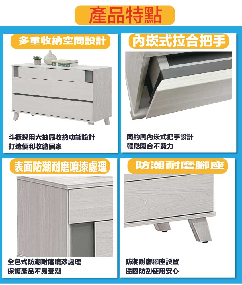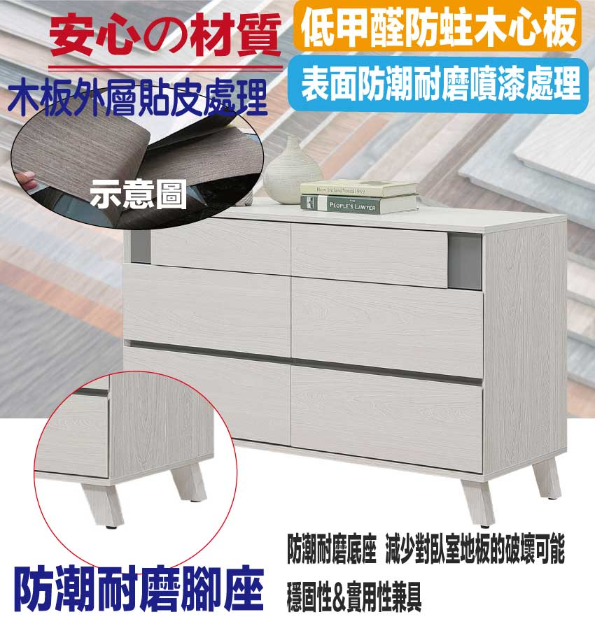 - ◆產品名稱:【綠家居】維斯4尺六抽斗櫃/收納櫃