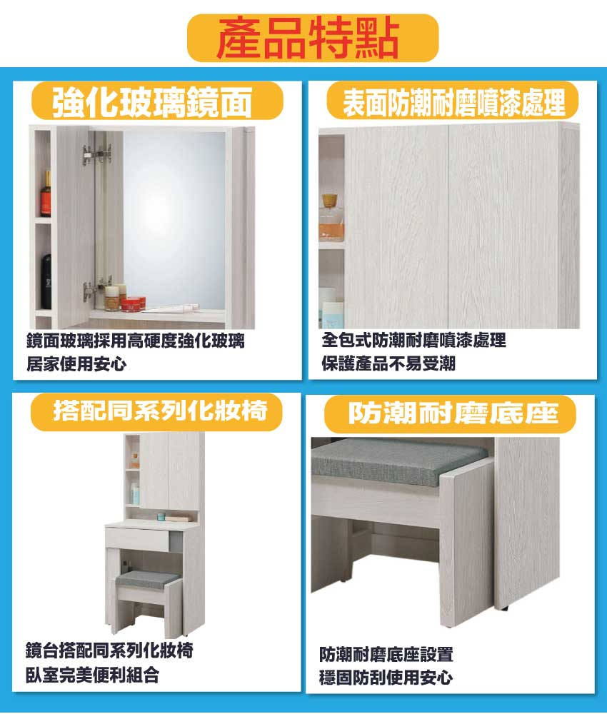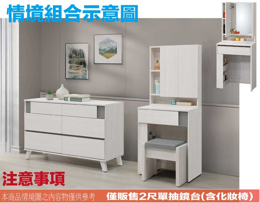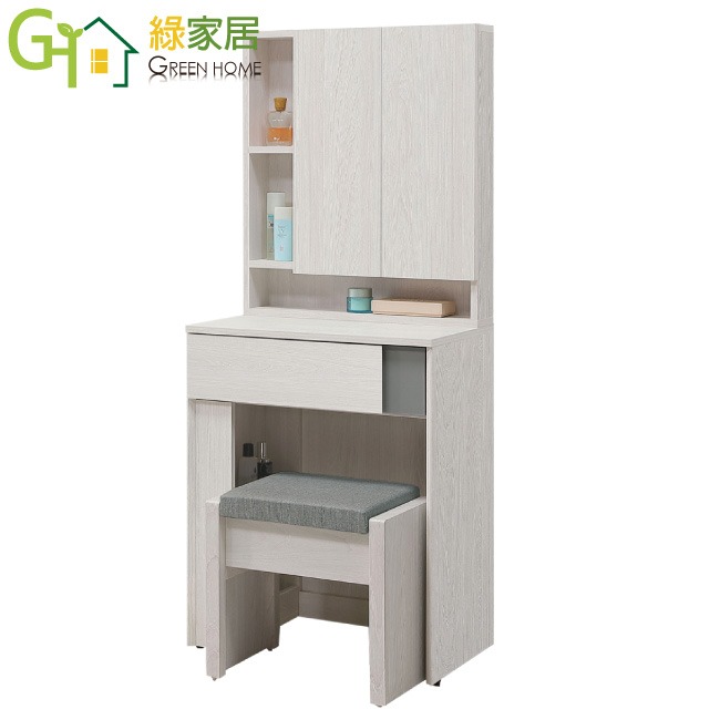 - ◆產品名稱:【綠家居】維斯2尺開合鏡面鏡台/化妝台組合(含化妝椅)