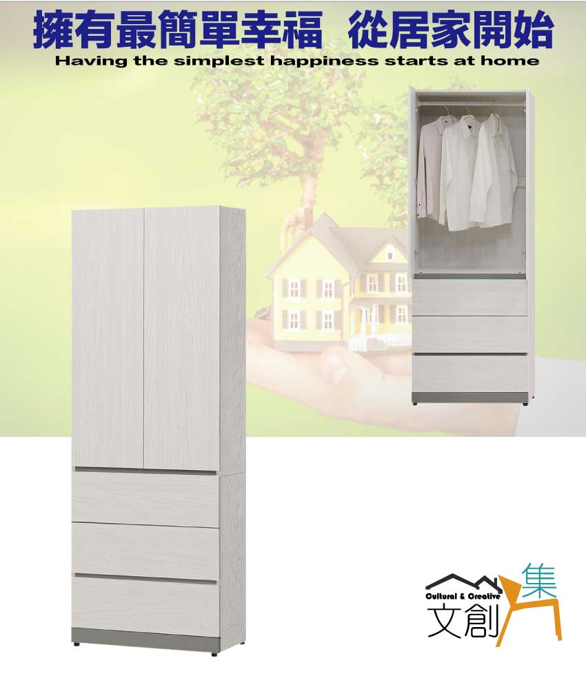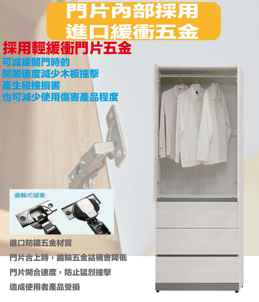 - ◆產品名稱:【綠家居】維斯2.5尺二門三抽衣櫃