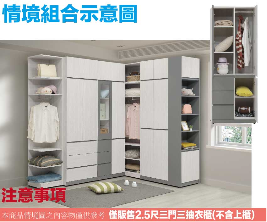 - ◆產品名稱:【綠家居】維斯2.5尺三門三抽衣櫃