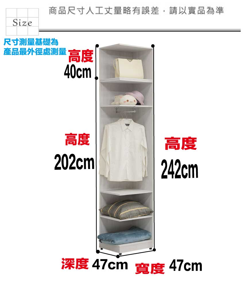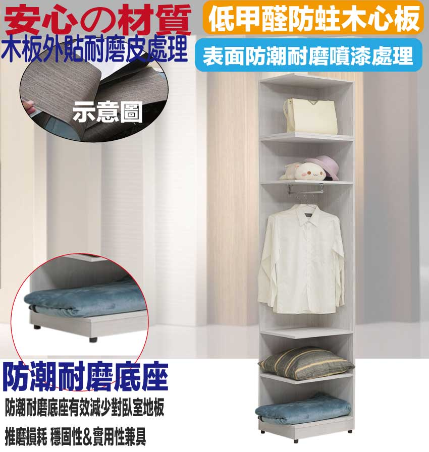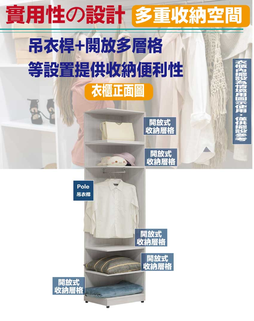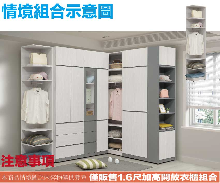 - ◆產品名稱:【綠家居】維斯1.6尺開放式加高側邊衣櫃組合