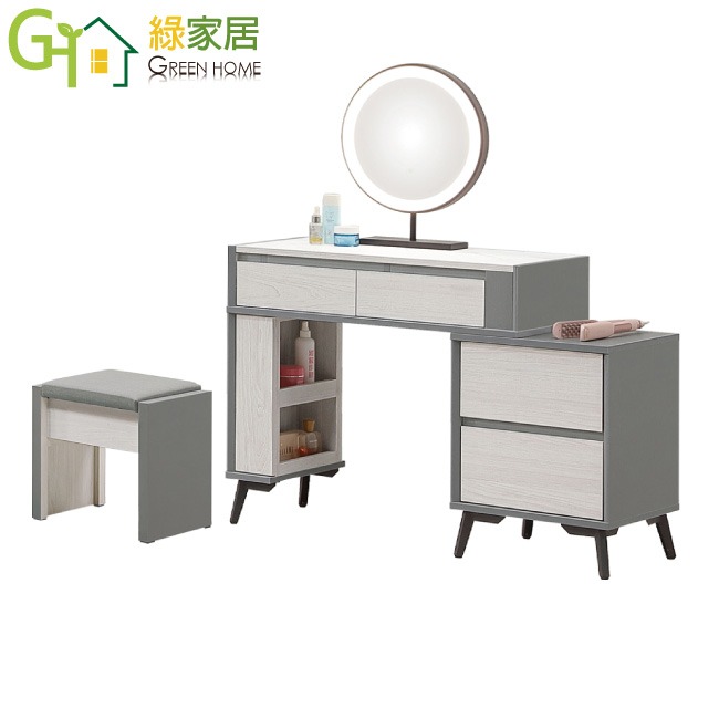 【綠家居】維法2.7尺伸縮觸控鏡面鏡台組合(含化妝椅) 木紋雙色系+安心材質製造,使用放心+搭配居家更便利,採用防蛀木心板+烤漆五金腳座+五金滑軌結構+仿大理石紋美耐皿材質桌面板+強化玻璃鏡面等安心材質製造 ,外層採用防潮耐磨噴漆處理搭配採用觸控鏡面+四抽屜+開放桌面等收納空間設計,全由專人配送到家,專業安心服務,替你省下更多時間!