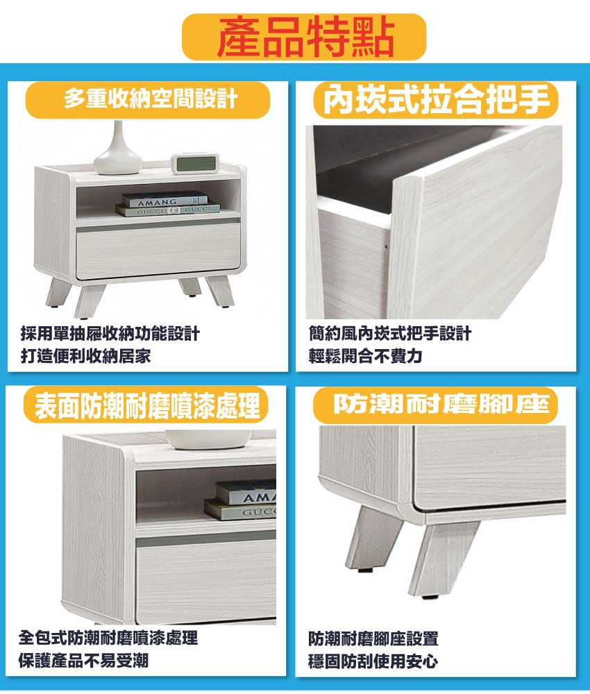 - ◆產品名稱:【綠家居】泰格1.7尺單抽床頭櫃