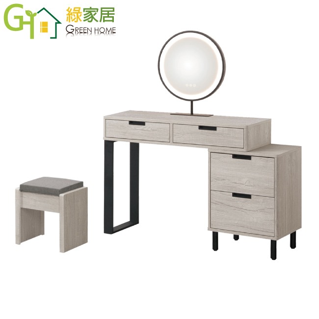 【綠家居】巴格3尺伸縮觸控鏡面鏡台組合(含化妝椅) 木紋雙色系+安心材質製造,使用放心+搭配居家更便利,採用防蛀木心板+烤漆五金腳座+五金滑軌結構+仿大理石紋美耐皿材質桌面板+強化玻璃鏡面等安心材質製造 ,外層採用防潮耐磨噴漆處理搭配採用觸控鏡面+四抽屜+開放桌面等收納空間設計,全由專人配送到家,專業安心服務,替你省下更多時間!
