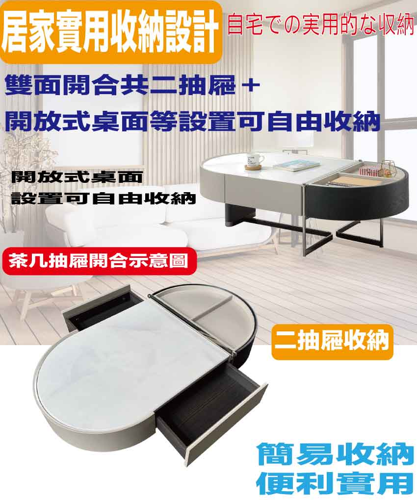 搭配採用雙面開合二抽屜+開放桌面等收納空間設計