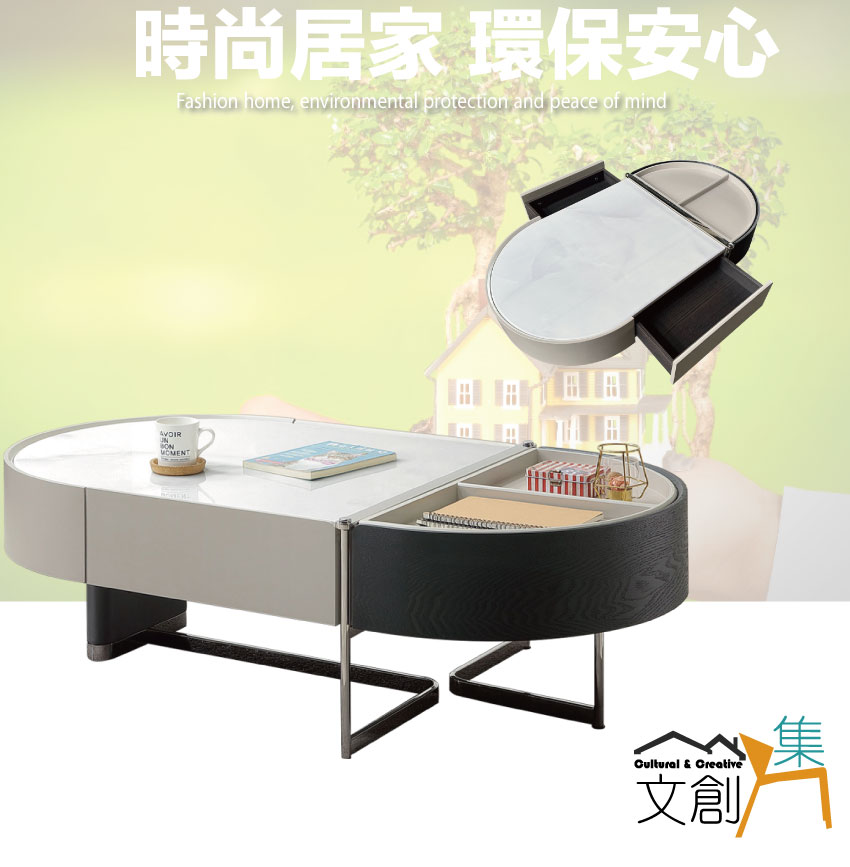 - ◆產品名稱:【綠家居】弗卡4.3尺雲紋石面二抽大茶几