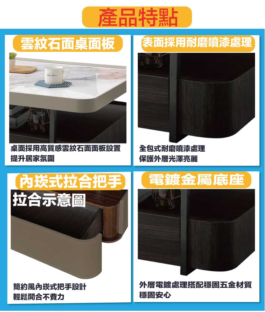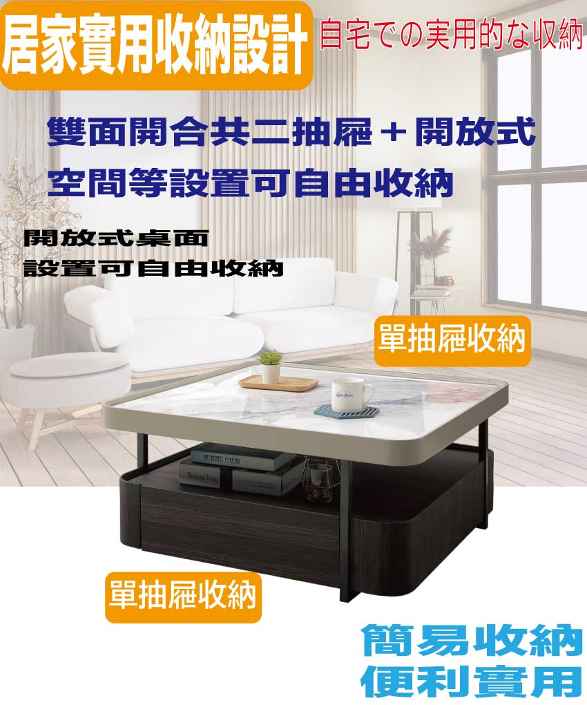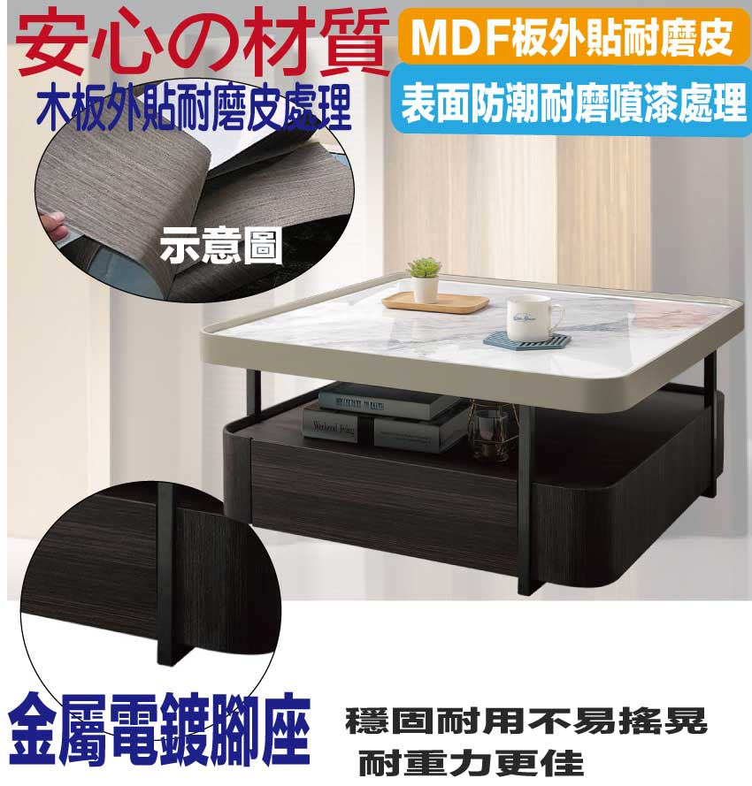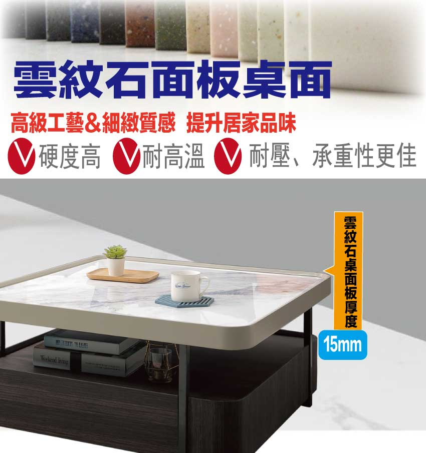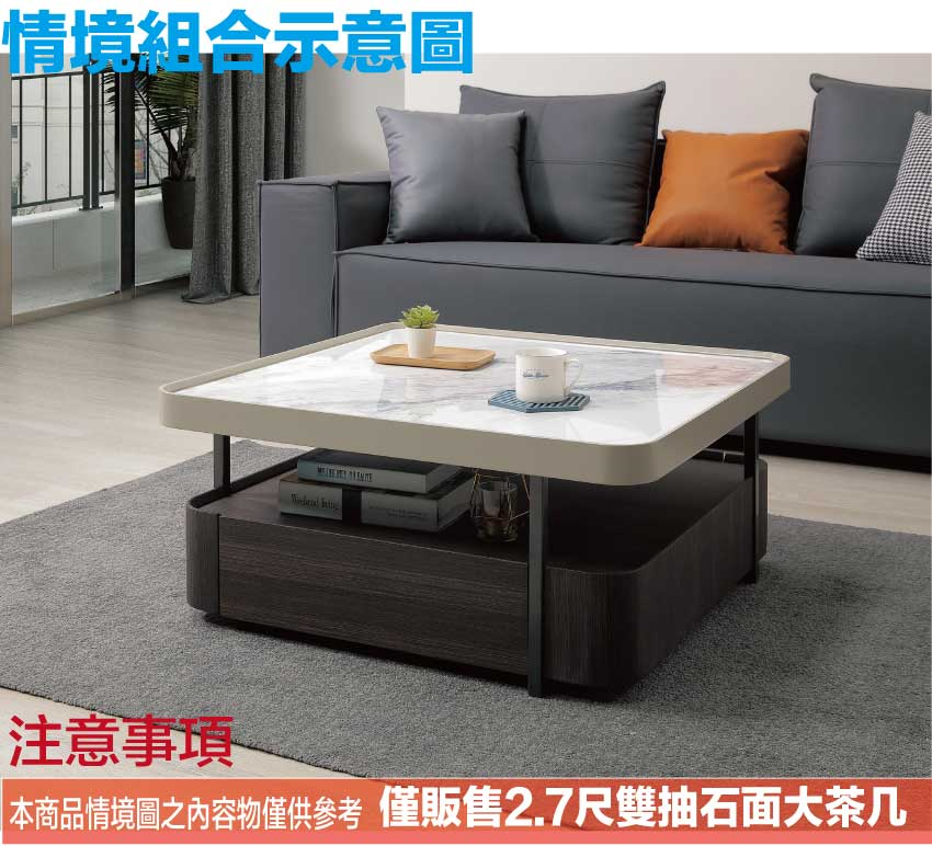 - ◆產品名稱:【綠家居】克利格2.7尺雲紋石面雙抽大茶几/方几