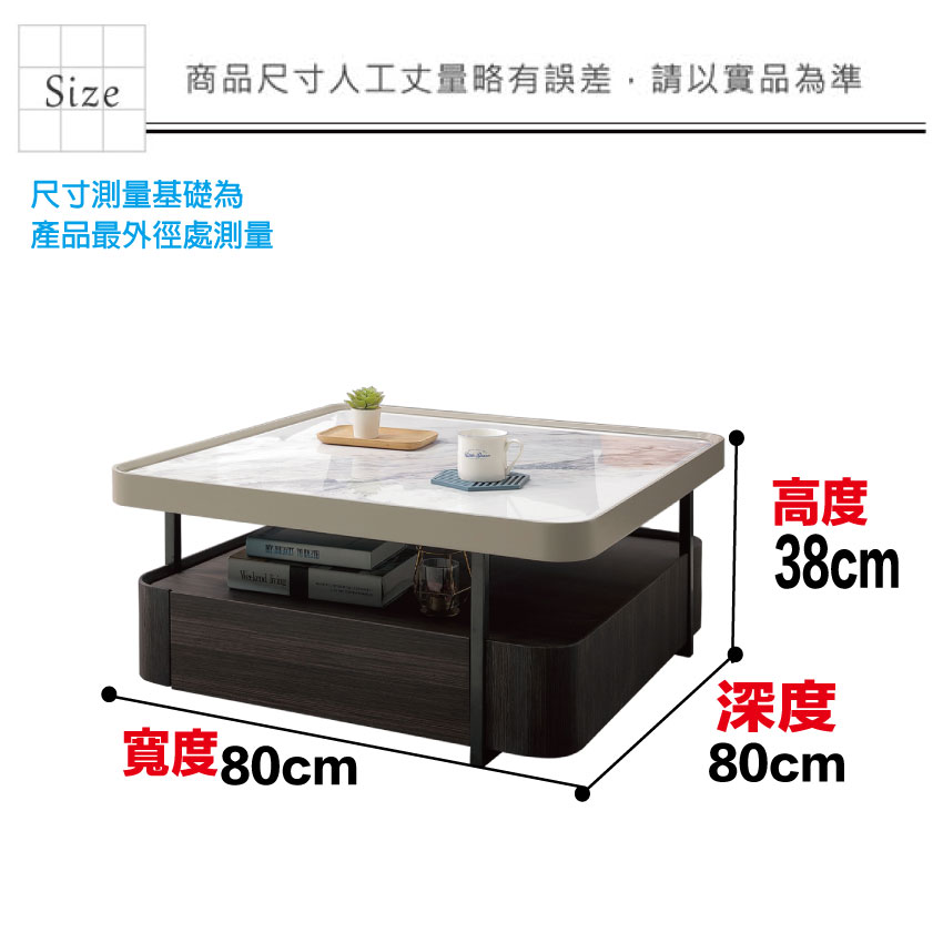 茶几尺寸:(寬)80x(深)80x(高)38/公分