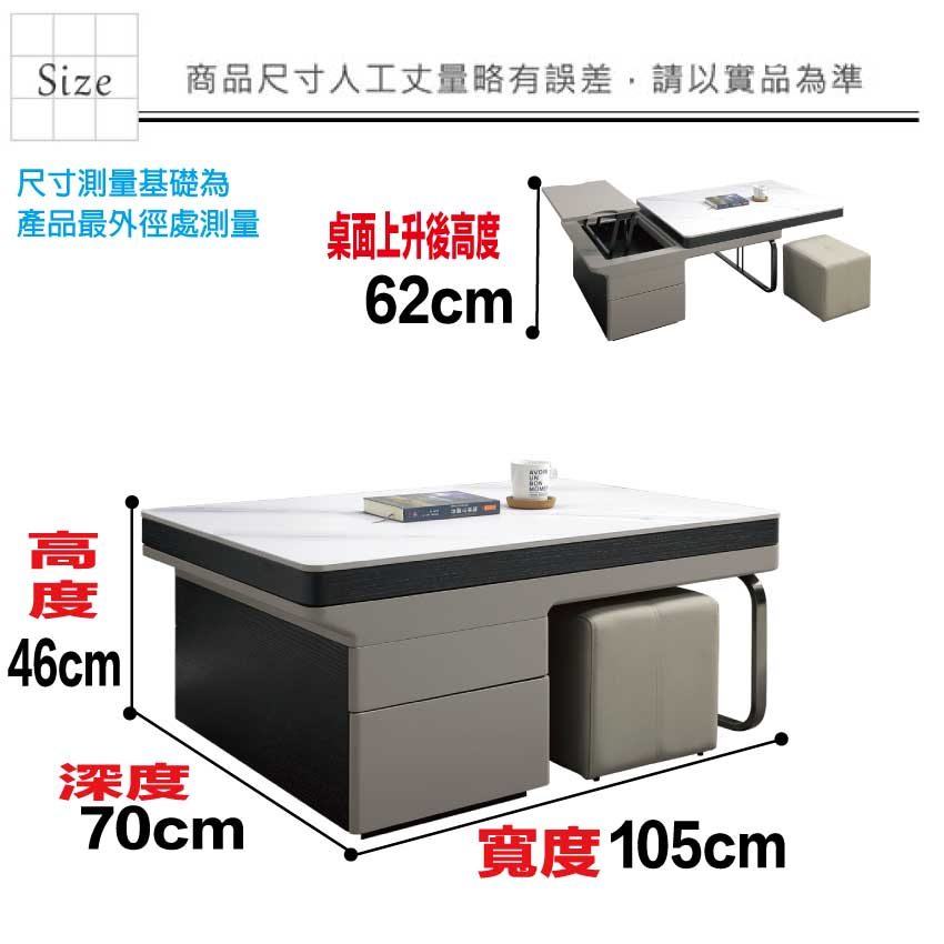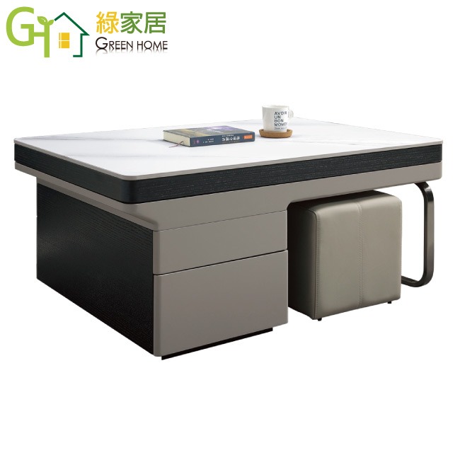 【綠家居】弗斯3.5尺雲紋石面升降大茶几(桌面可升降&橫移+附贈單個皮革圓凳) 現代雙色系+安心材質製造,使用放心+搭配居家更便利,採用防潮MDF板+金屬電鍍腳座+五金滑軌結構+升降五金結構+12mm雲紋石面桌面板等安心材質製造 ,外層採用防潮耐磨噴漆處理搭配採用可升降桌面板(46-62cm)抽屜+桌面板可橫移伸縮使用+單抽屜+開放層格+附贈單個皮革圓凳等收納空間設計,全由專人配送到家,專業安心服務,替你省下更多時間!