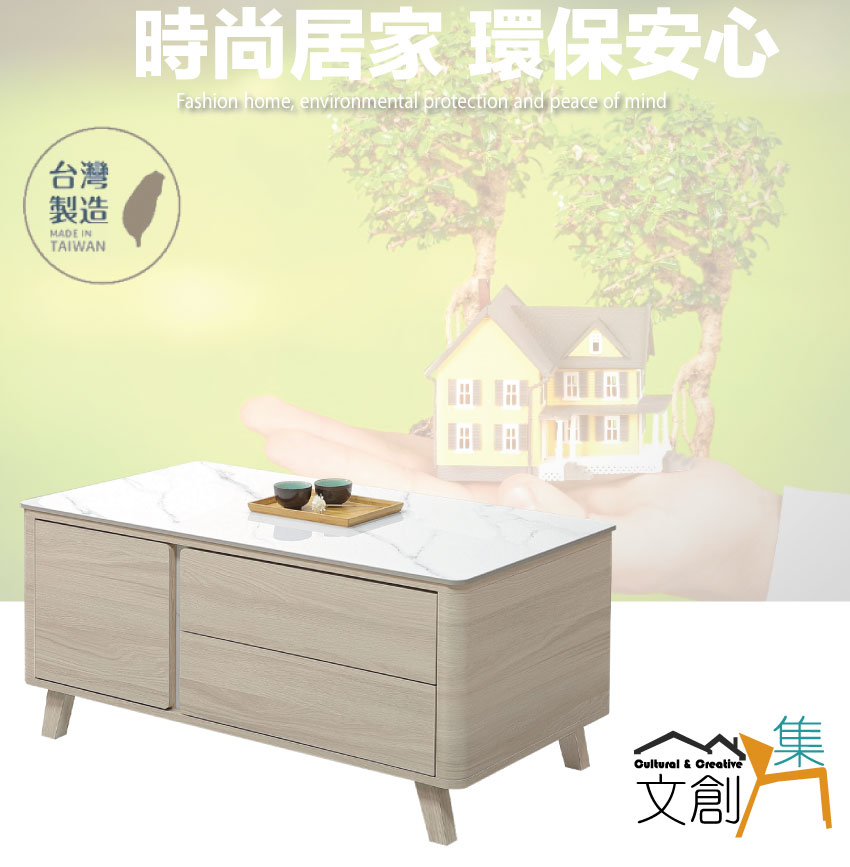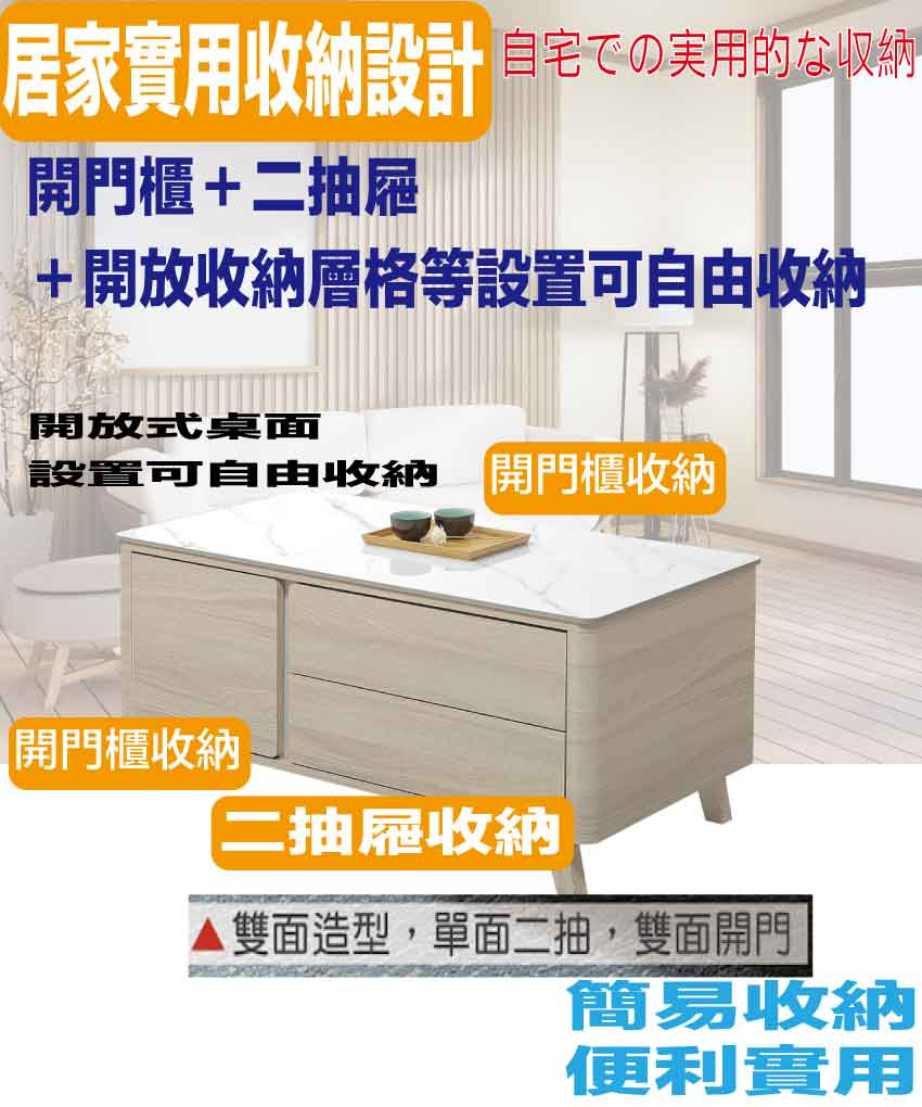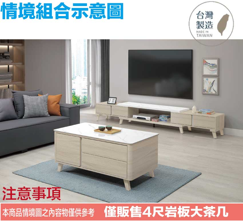 - ◆產品名稱:【綠家居】安卡蘭4尺岩板開門二抽大茶几