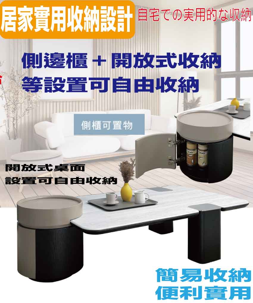 搭配採用側邊開門櫃+開放層格等收納空間設計