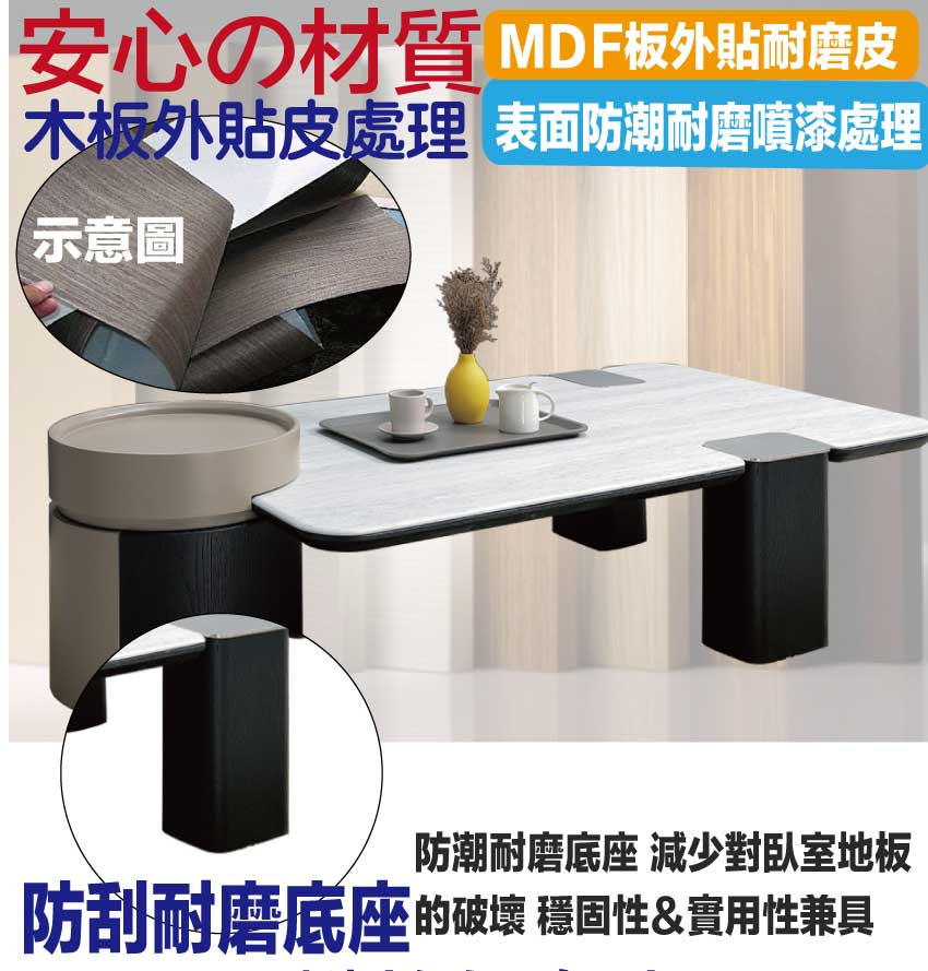 採用防潮MDF板+防潮耐磨底座+15mm雲紋石面桌面板等安心材質製造