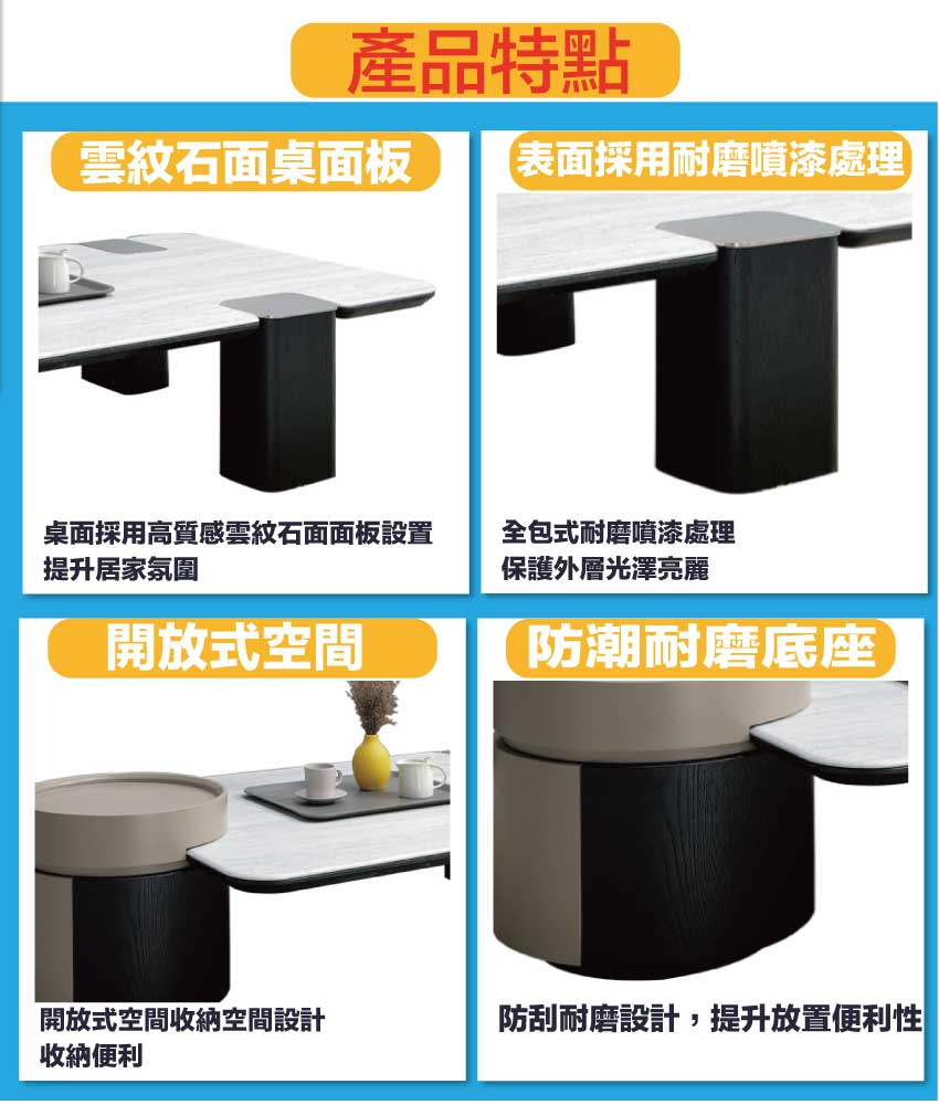 - ◆產品名稱:【綠家居】德奎爾4.7尺雲紋石面大茶几