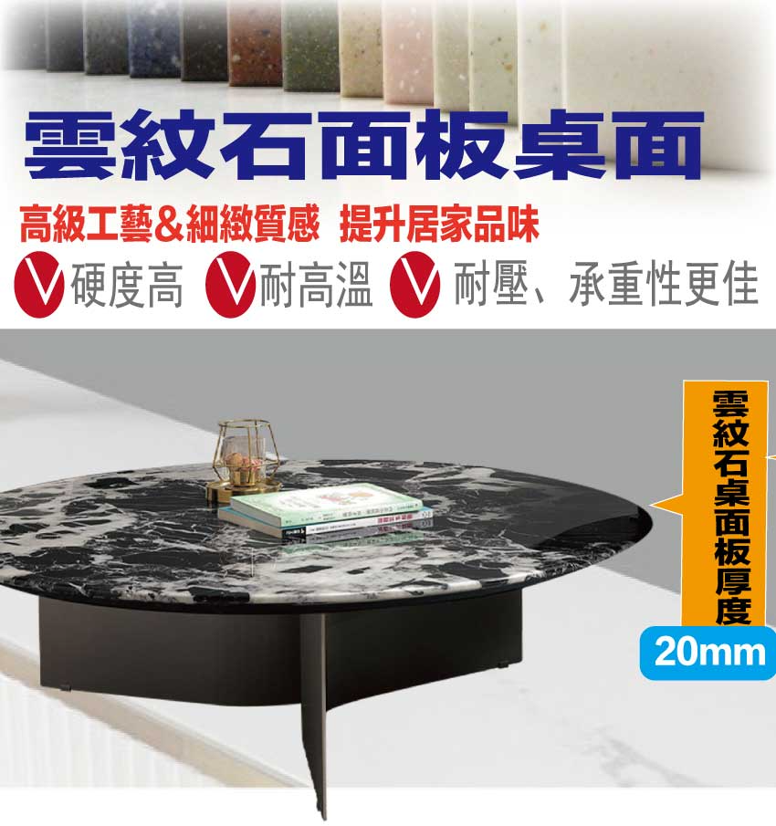 採用烤漆五金底座+20mm雲紋石面桌面板等安心材質製造