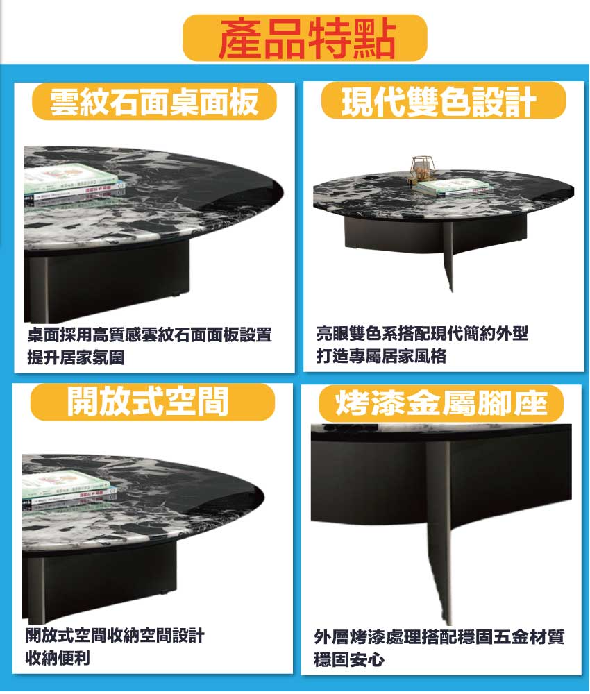 【綠家居】瑞迪3.2尺雲紋石面大茶几/圓几 現代雙色系+安心材質製造,使用放心+搭配居家更便利,採用烤漆五金底座+20mm雲紋石面桌面板等安心材質製造 ,外層採用防潮耐磨噴漆處理搭配採用開放桌面收納空間設計,全由專人配送到家,專業安心服務,替你省下更多時間!